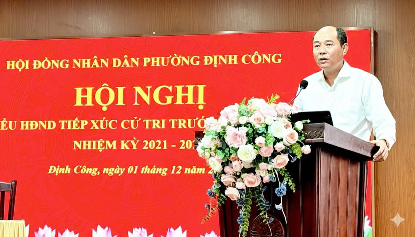 Phát biểu tại hội nghị, Bí thư Đảng ủy, Chủ tịch HĐND phường Nguyễn Quang Trung ghi nhận, tiếp thu những ý kiến đóng góp của người dân. Bí thư Đảng ủy, Chủ tịch HĐND phường yêu cầu UBND phường, các đoàn thể chính trị tiếp tục phát huy tinh thần trách nhiệm, nâng cao hiệu quả quản lý, điều hành. Đây là nền tảng để phường Định Công tiếp tục phát triển bền vững, xây dựng diện mạo đô thị văn minh, hiện đại.