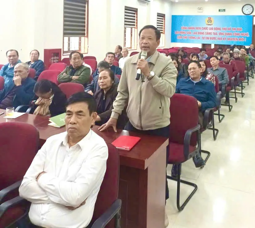 Cử tri phường Định Công nêu ý kiến tại hội nghị. Ảnh BN.