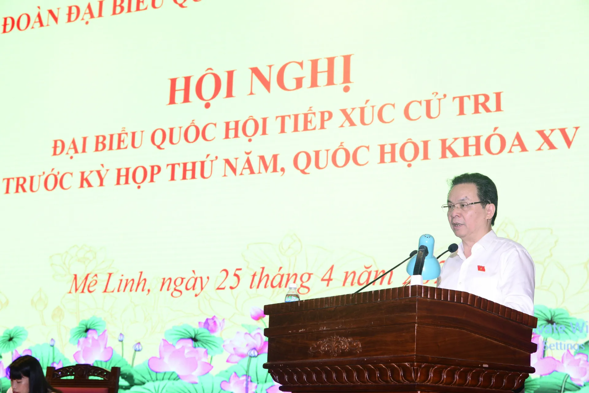 Tại buổi tiếp xúc cử tri, đại diện lãnh đạo địa phương – Chủ tịch UBND huyện Mê Linh Hoàng Anh Tuấn trả lời, làm rõ thêm các vấn đề cử tri kiến nghị, quan tâm.