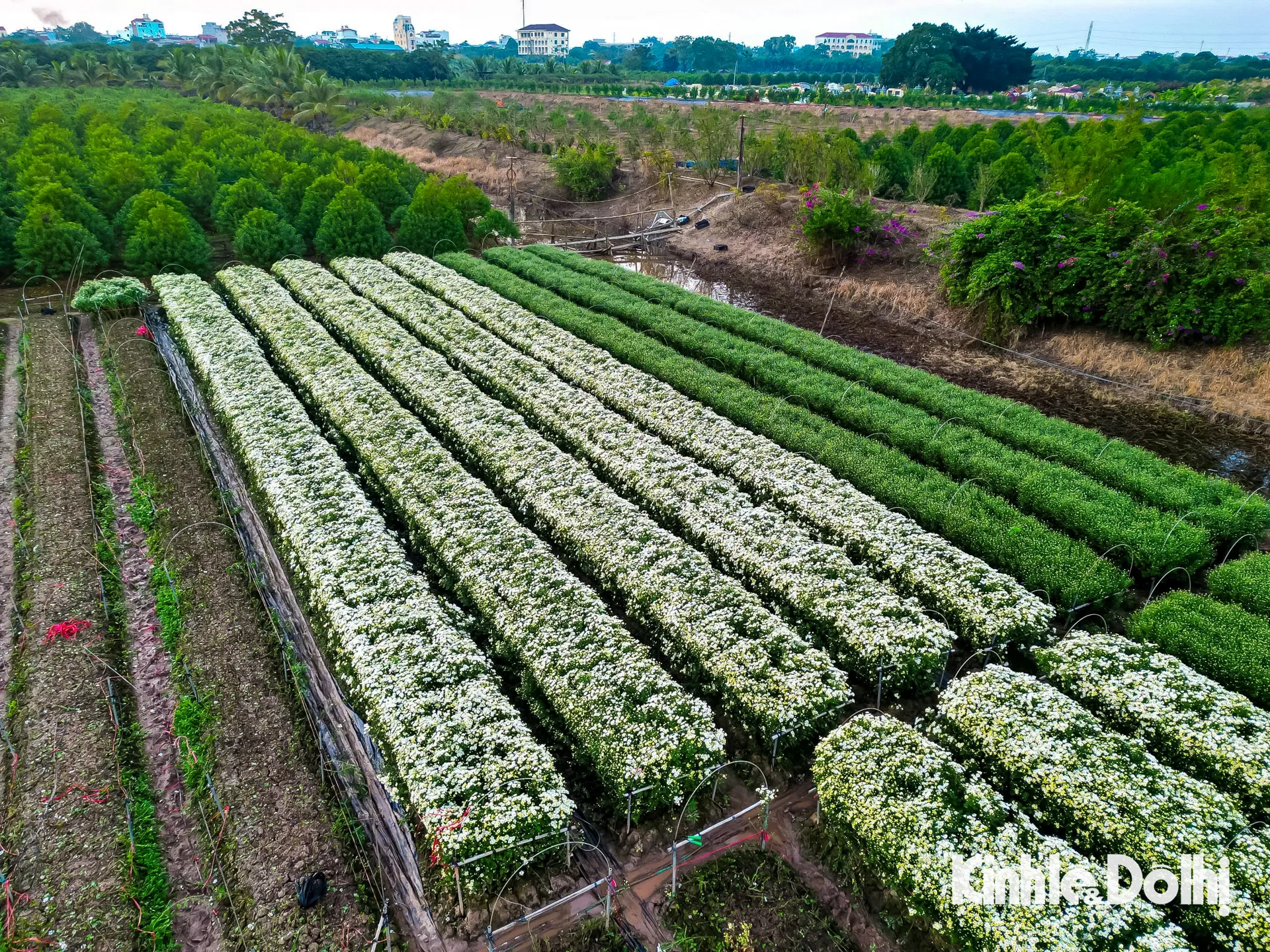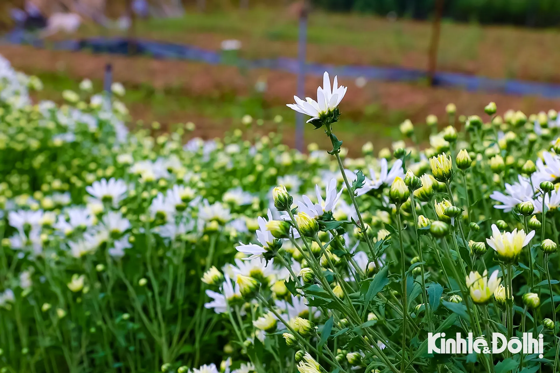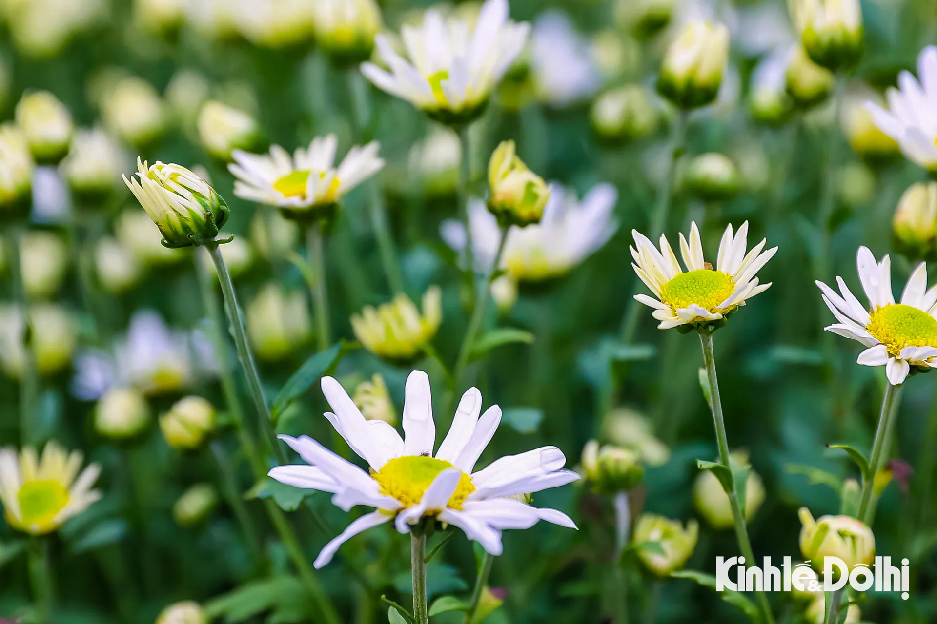 Ruộng cúc họa mi còn nguyên sương sớm, đẹp mơ màng trong tiết trời se lạnh đầu Đông.