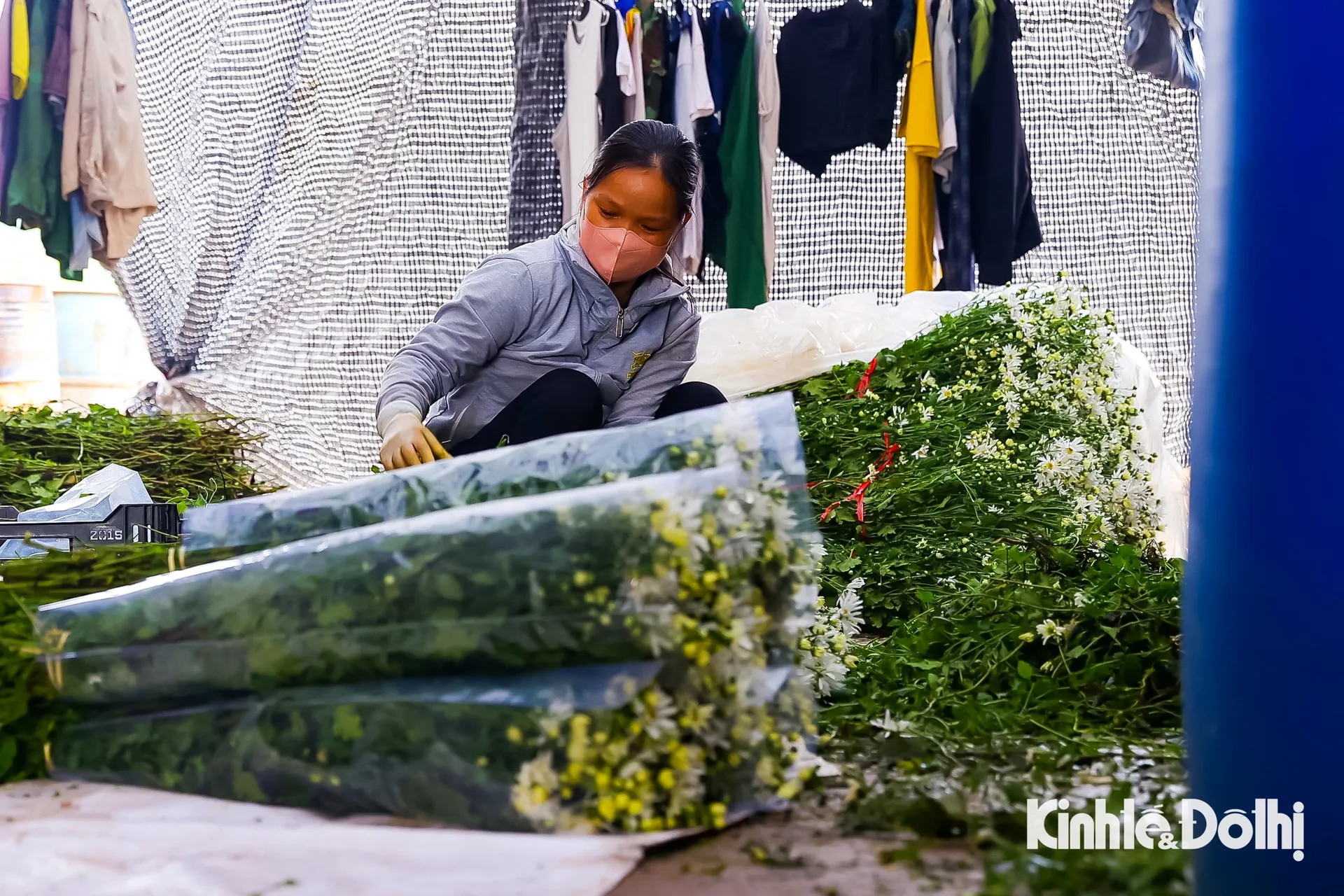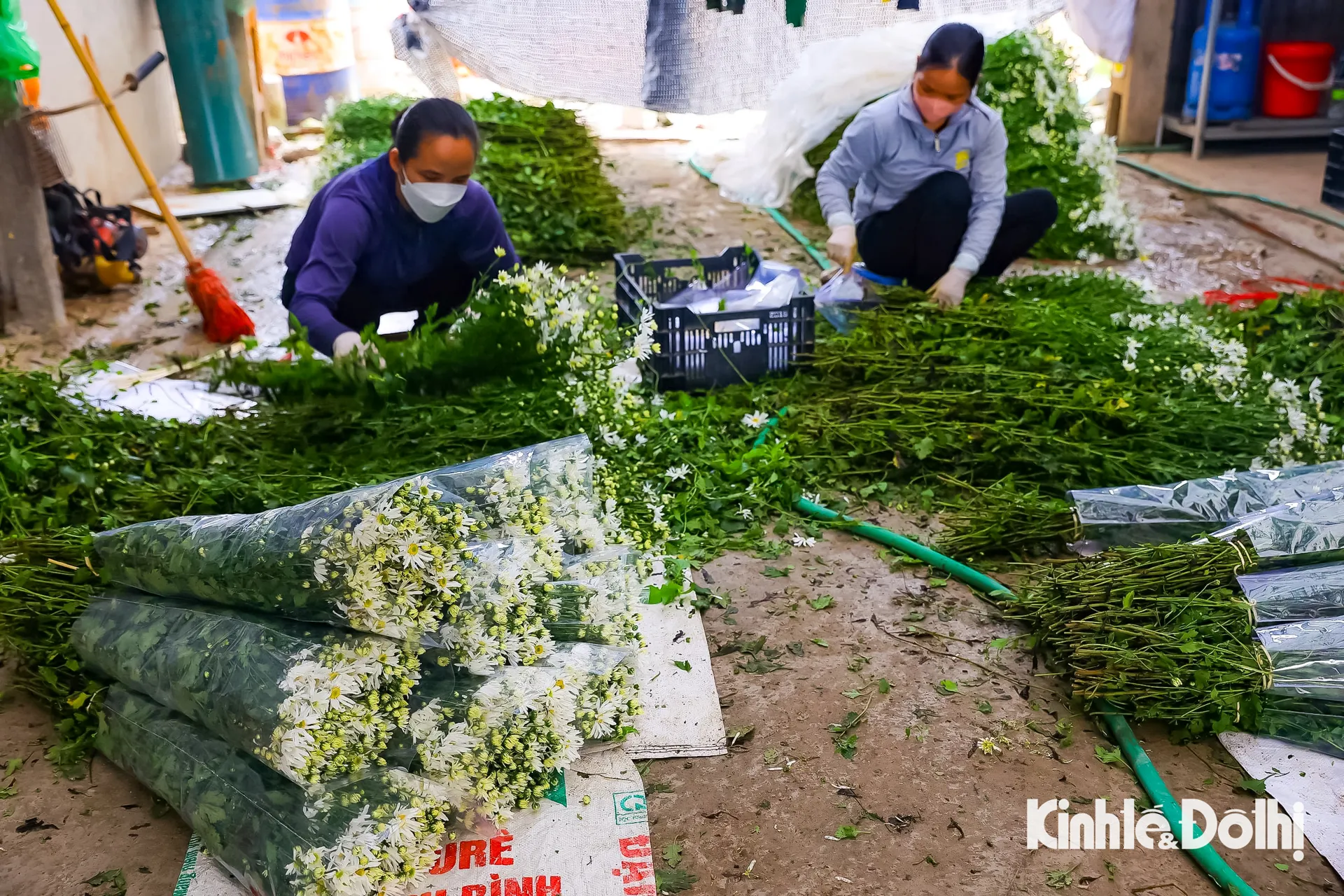 Chị Minh (một hộ dân trồng hoa tại Nhật Tân) cho biết: "Năm nay mưa lớn kéo dài, nhiều ruộng nhà tôi bị ngập sâu cả tuần. Mấy luống cúc hỏng gần hết, chỉ còn 2 - 3 luống ở khu đất cao là nở đúng dịp để thu hoạch. Thiệt hại thì nhiều, nhưng cũng may còn chút hoa để bán đầu mùa. Do hoa khan hiếm, giá năm nay dễ bán hơn, thương lái đặt hàng liên tục nên gia đình phải tranh thủ thu hoạch từ sớm. Cúc họa mi nở ngắn lắm, chỉ chậm vài ngày là hỏng, nên cứ kịp nở là chúng tôi cắt luôn để đem đi bán".