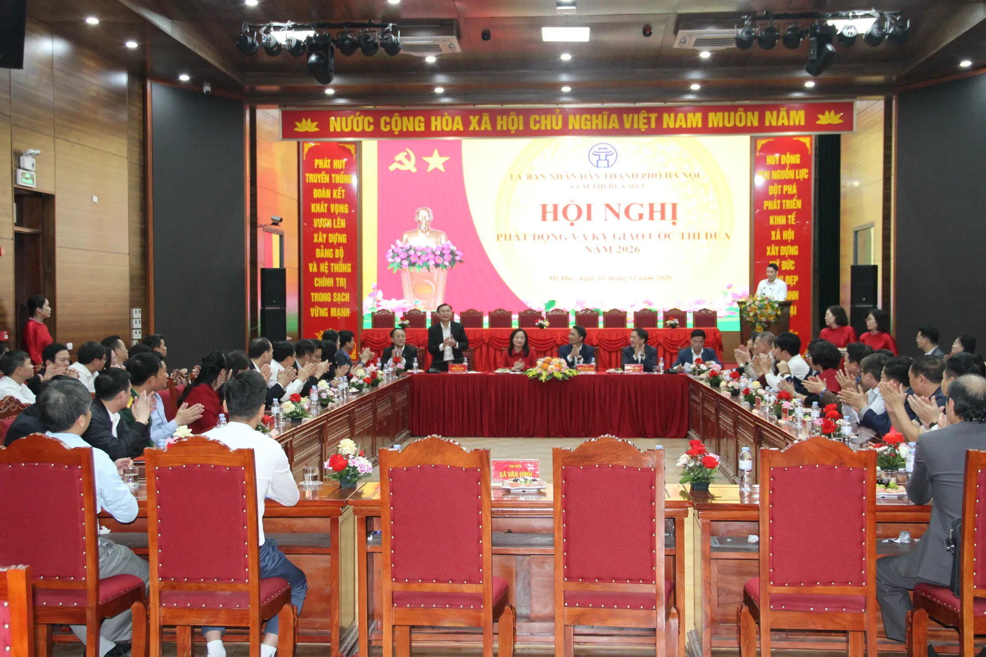Hội nghị đã thống nhất chấm điểm, suy tôn danh hiệu thi đua năm 2025 và bầu xã Mỹ Đức làm Cụm trưởng, xã Thanh Oai làm Cụm phó Cụm thi đua số 9 năm 2026.