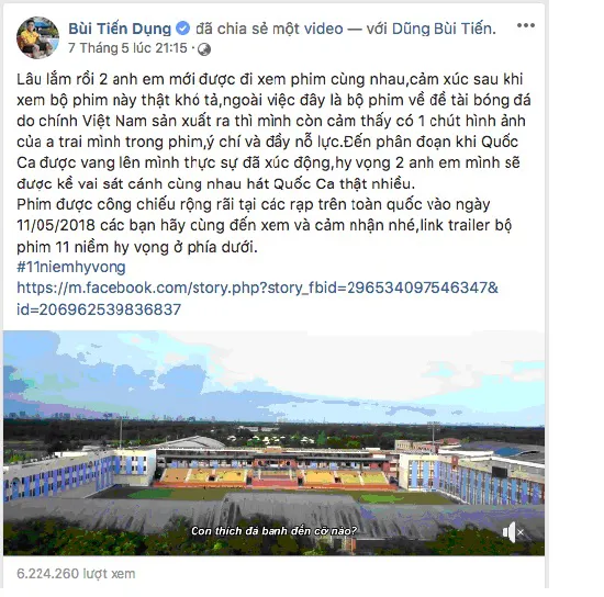 | Chia sẻ của Bùi Tiến Dụng đến anh trai: hy vọng sẽ được kề vai sát cánh cùng nhau trên sân cỏ nhiều hơn |