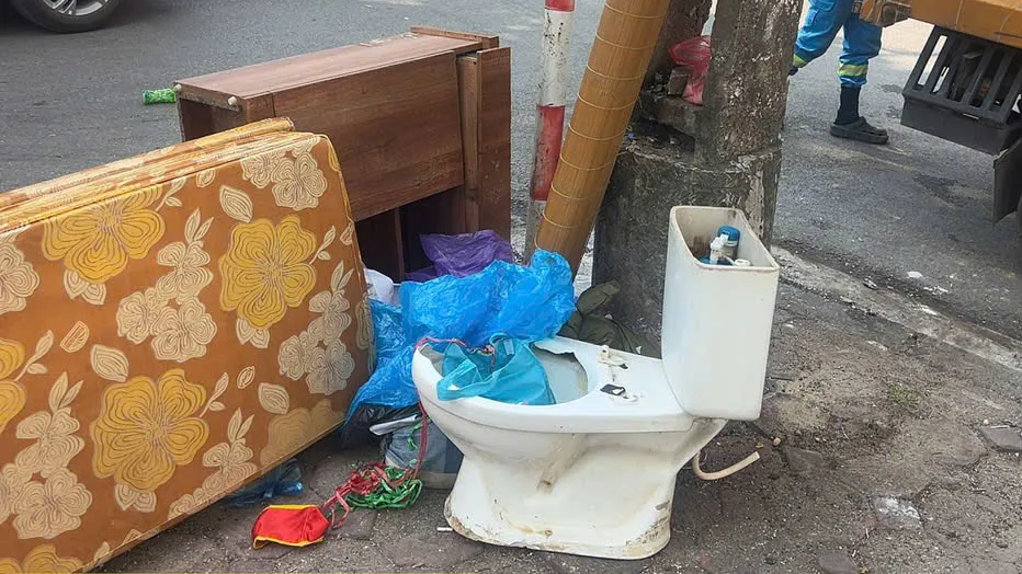 Những ngày giáp Tết Nguyên đán, dạo quanh một vòng các tuyến phố tại khu vực quận Hai Bà Trưng cũ, không khó để bắt gặp những đống phế thải xây dựng, giường tủ hỏng, bàn ghế cũ nằm ngổn ngang trên vỉa hè hay lẩn khuất dưới các chân đê. Theo phản ánh của người dân và ghi nhận thực tế, các khu vực như đê Nguyễn Khoái, phố Trần Thánh Tông, khu vực Yec - xanh, và đặc biệt là dọc bờ sông Kim Ngưu đang trở thành những "điểm nóng" hứng chịu nạn đổ trộm rác thải.