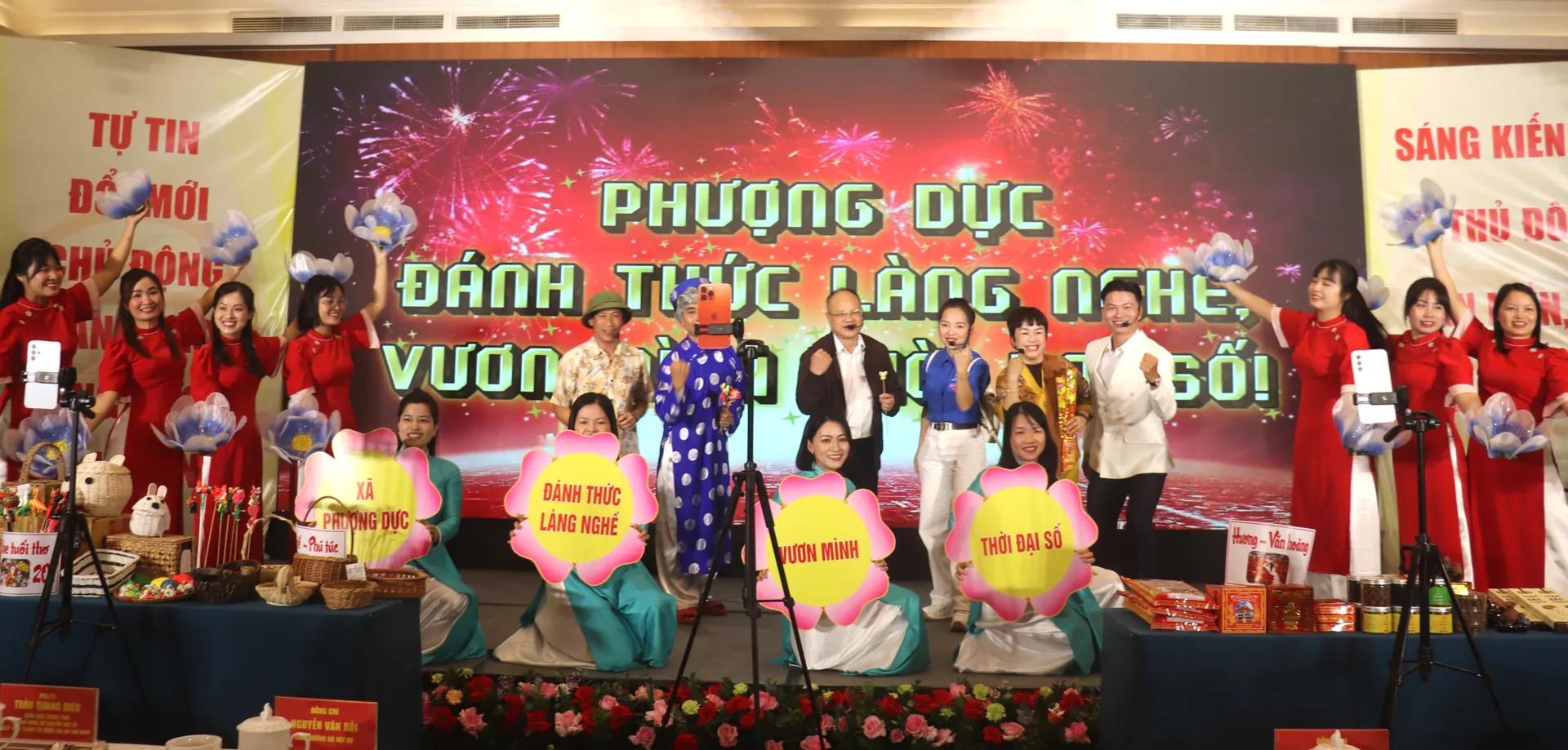 Đáng chú ý, mở đầu phần dự thi, đội thi UBND xã Phượng Dực mang tới sáng kiến “Phượng Dực - Đánh thức làng nghề bằng chuyển đổi số”, với mong muốn không chỉ tạo ra hiệu quả kinh tế trước mắt mà còn thay đổi tư duy phát triển làng nghề, hình thành hệ sinh thái kinh tế số gắn với văn hóa truyền thống. Mô hình hoàn toàn có thể áp dụng cho các địa phương có làng nghề trên địa bàn Hà Nội, góp phần xây dựng nông thôn mới kiểu mẫu, kinh tế số nông thôn và phát triển bền vững.