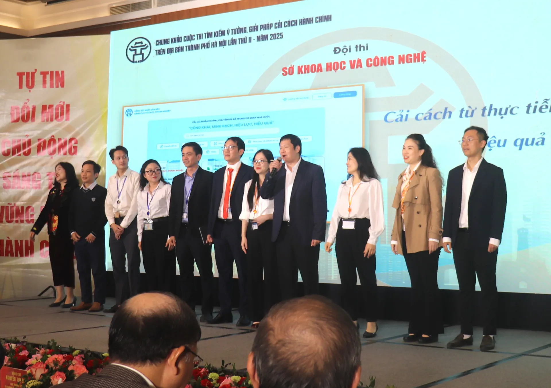 Trong khi đó, đội thi Sở Khoa học và Công nghệ Hà Nội trình bày sáng kiến “Hệ thống chuyển, nhận văn bản trực tuyến dành cho tổ chức, DN”. Hiệu quả lớn nhất là việc áp dụng hệ thống giúp rút ngắn đáng kể thời gian xử lý văn bản (từ hàng giờ xuống còn vài phút); nâng cao tính minh bạch, chính xác, giảm nguy cơ thất lạc; tăng khả năng giám sát, thống kê và đánh giá hiệu quả công việc trong toàn bộ quy trình gửi - nhận văn bản. Lợi ích thu được là tiết kiệm hàng chục tỷ đồng mỗi năm cho ngân sách Nhà nước và DN do giảm chi phí in ấn, chuyển phát, lưu trữ; tiết kiệm hàng triệu giờ làm việc; nâng cao chất lượng phục vụ DN, tăng mức độ hài lòng, thúc đẩy tương tác số giữa chính quyền và DN; giảm sử dụng giấy, hạn chế vận chuyển bưu chính, góp phần giảm phát thải và bảo vệ môi trường.