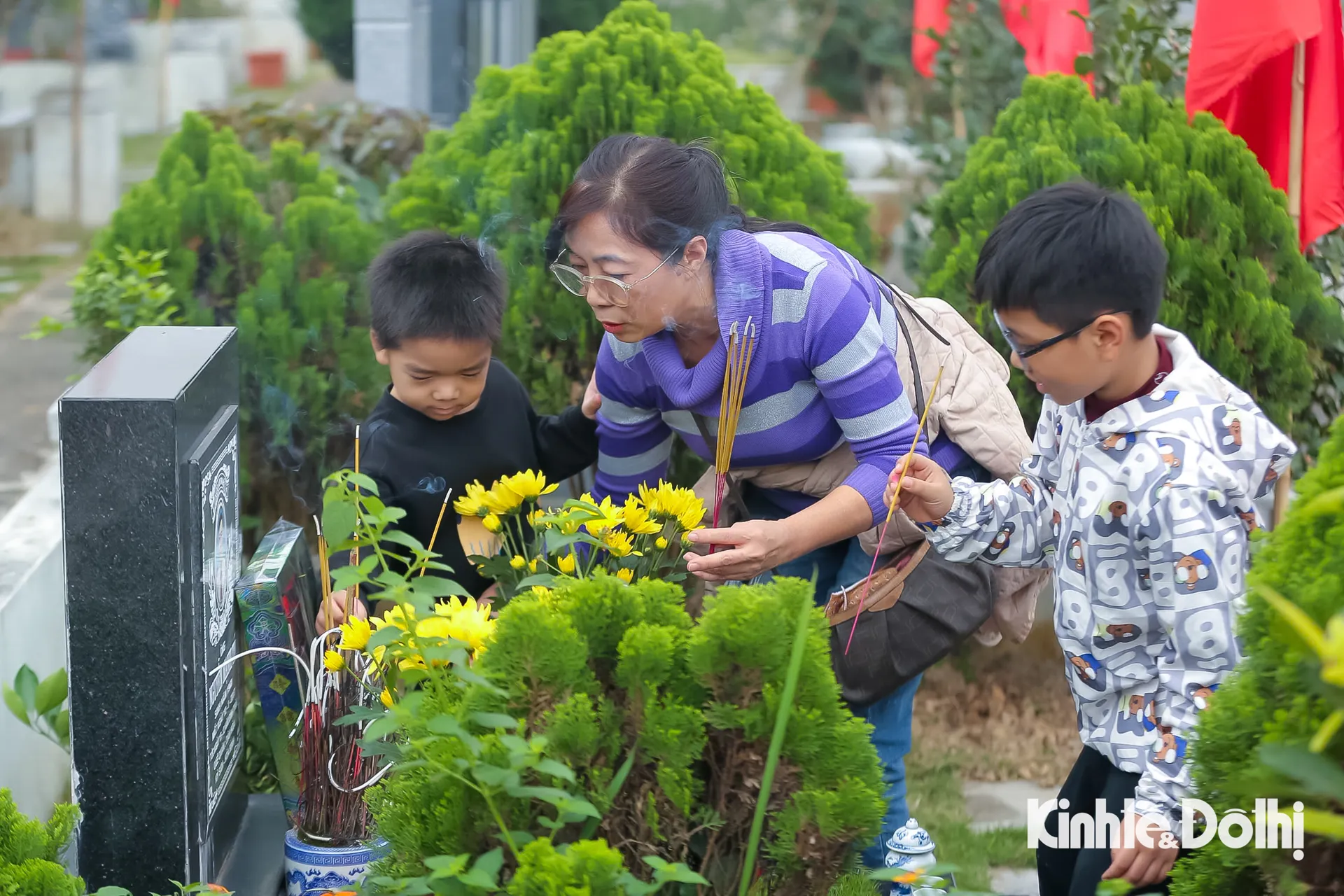 Trong không khí se lạnh của những ngày tháng Chạp, từng phần mộ được lau dọn sạch sẽ, cỏ cây được cắt tỉa gọn gàng, hoa tươi được thay mới, tạo nên khung cảnh trang nghiêm nhưng ấm áp.