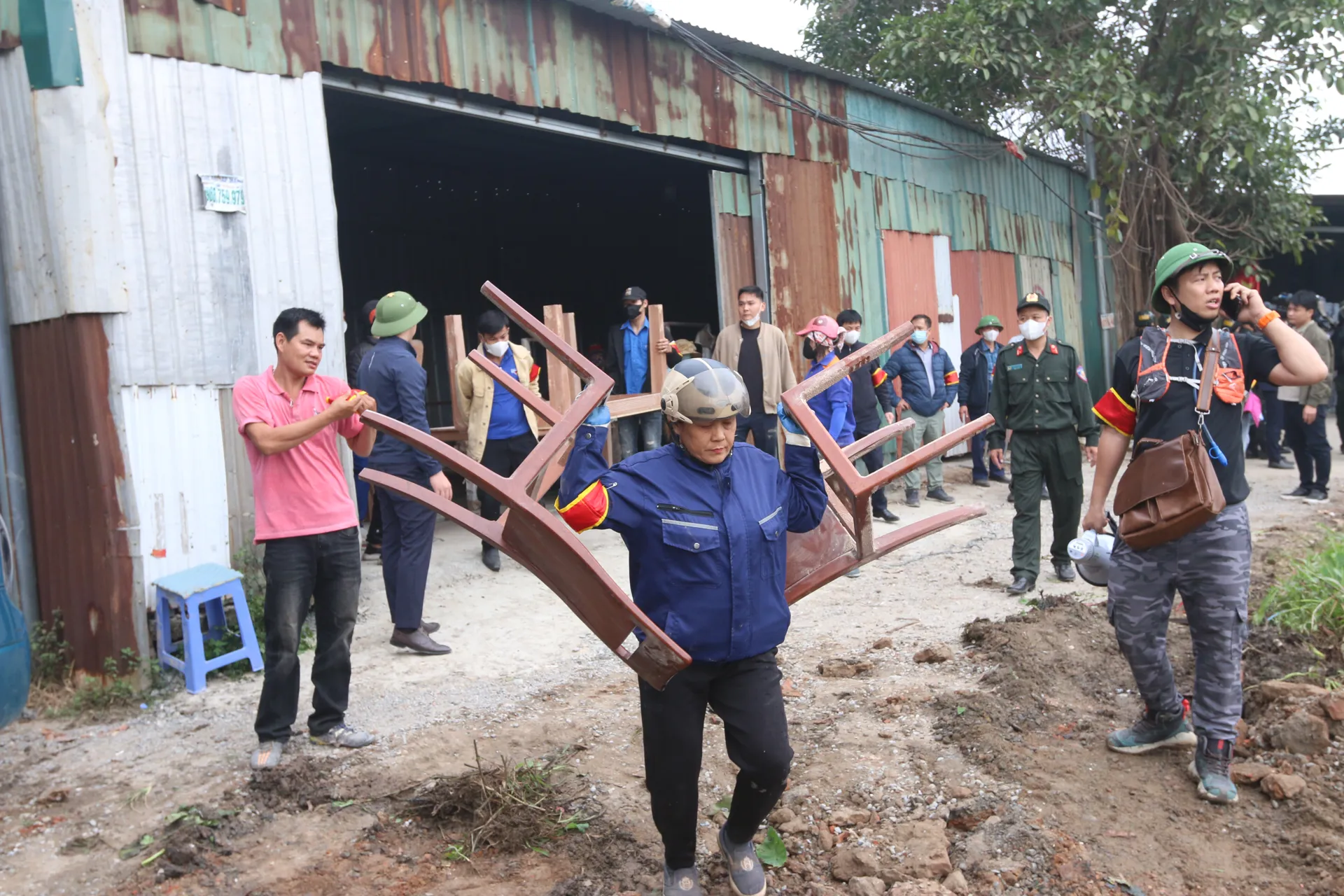 Hộ gia đình không chấp hành được vận động, đưa người và đồ đạc ra khỏi khu vực cưỡng chế. Ảnh: Công Phương.