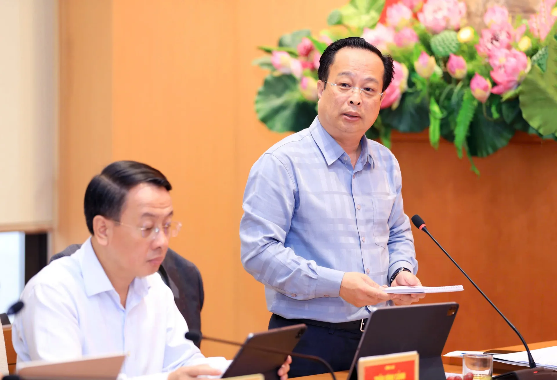 Phó Chủ tịch Thường trực HĐND TP Trần Thế Cương, Phó Chủ tịch Thường trực Ủy ban Bầu cử TP điều hành phiên họp