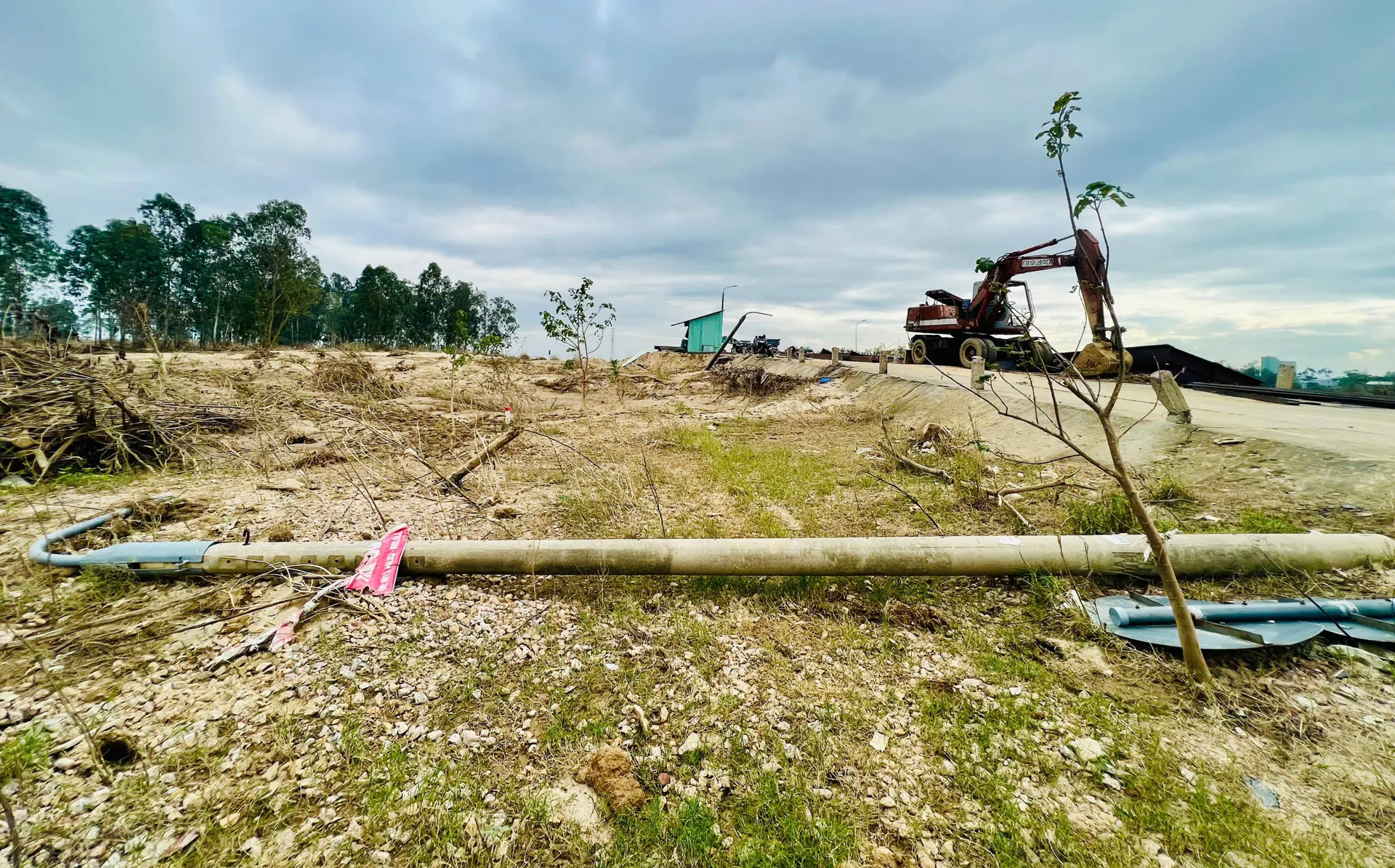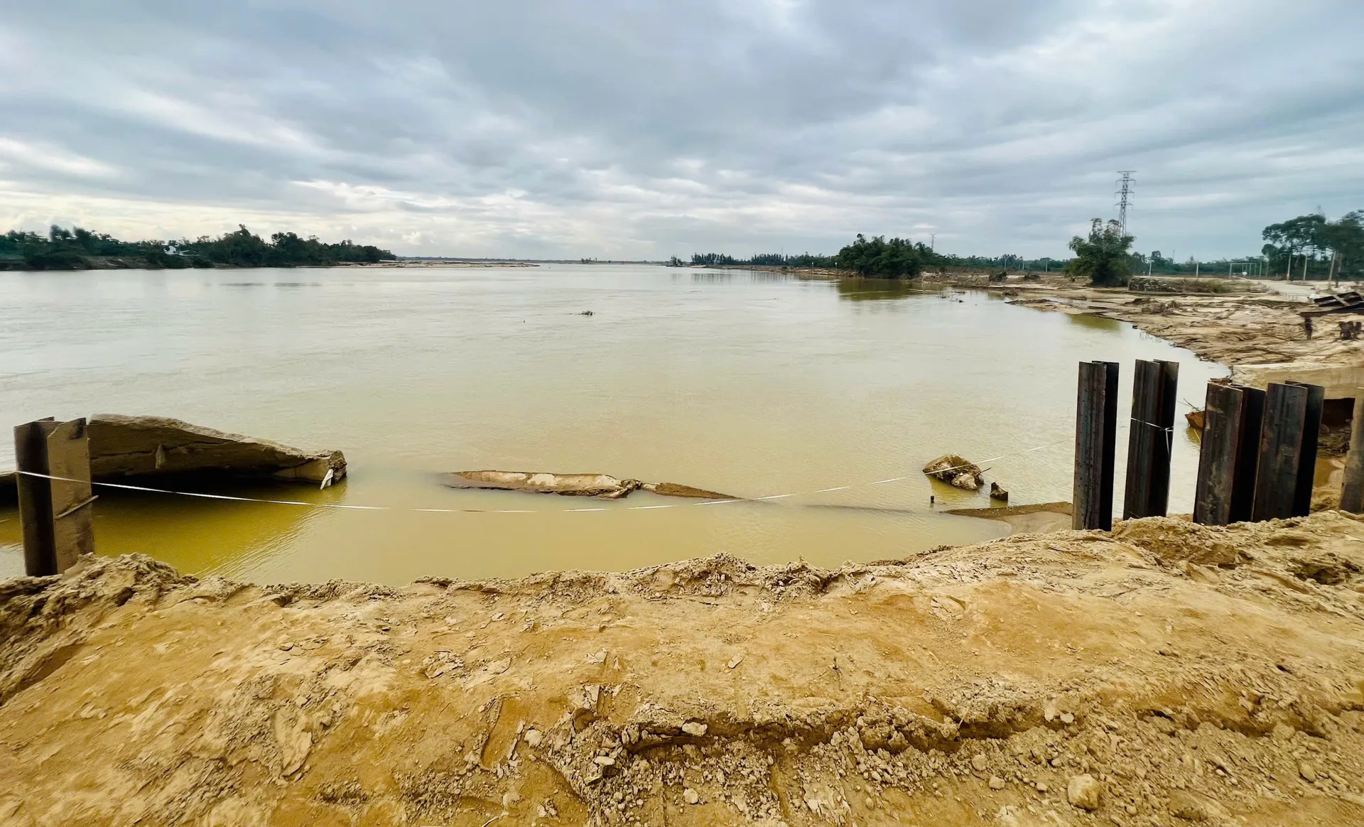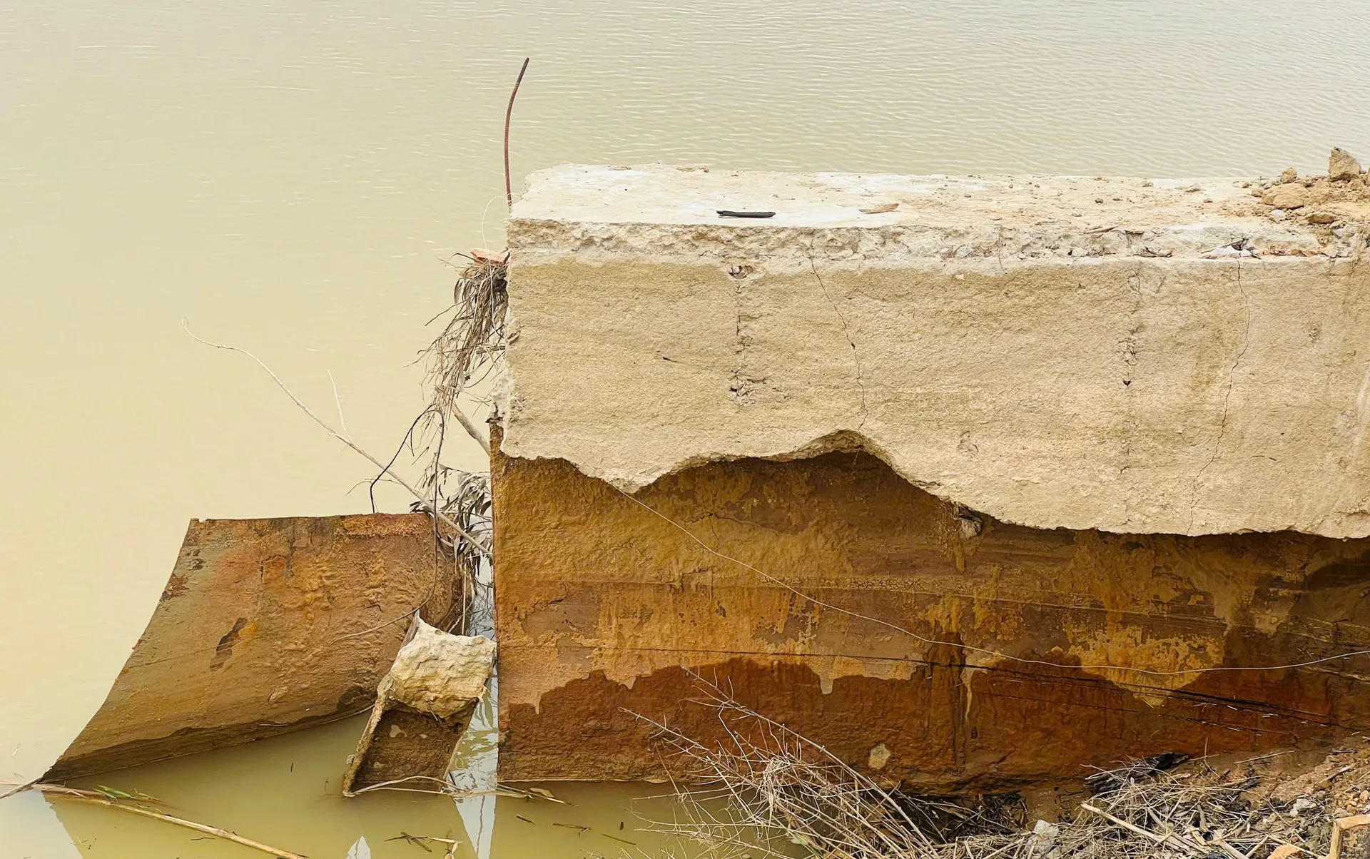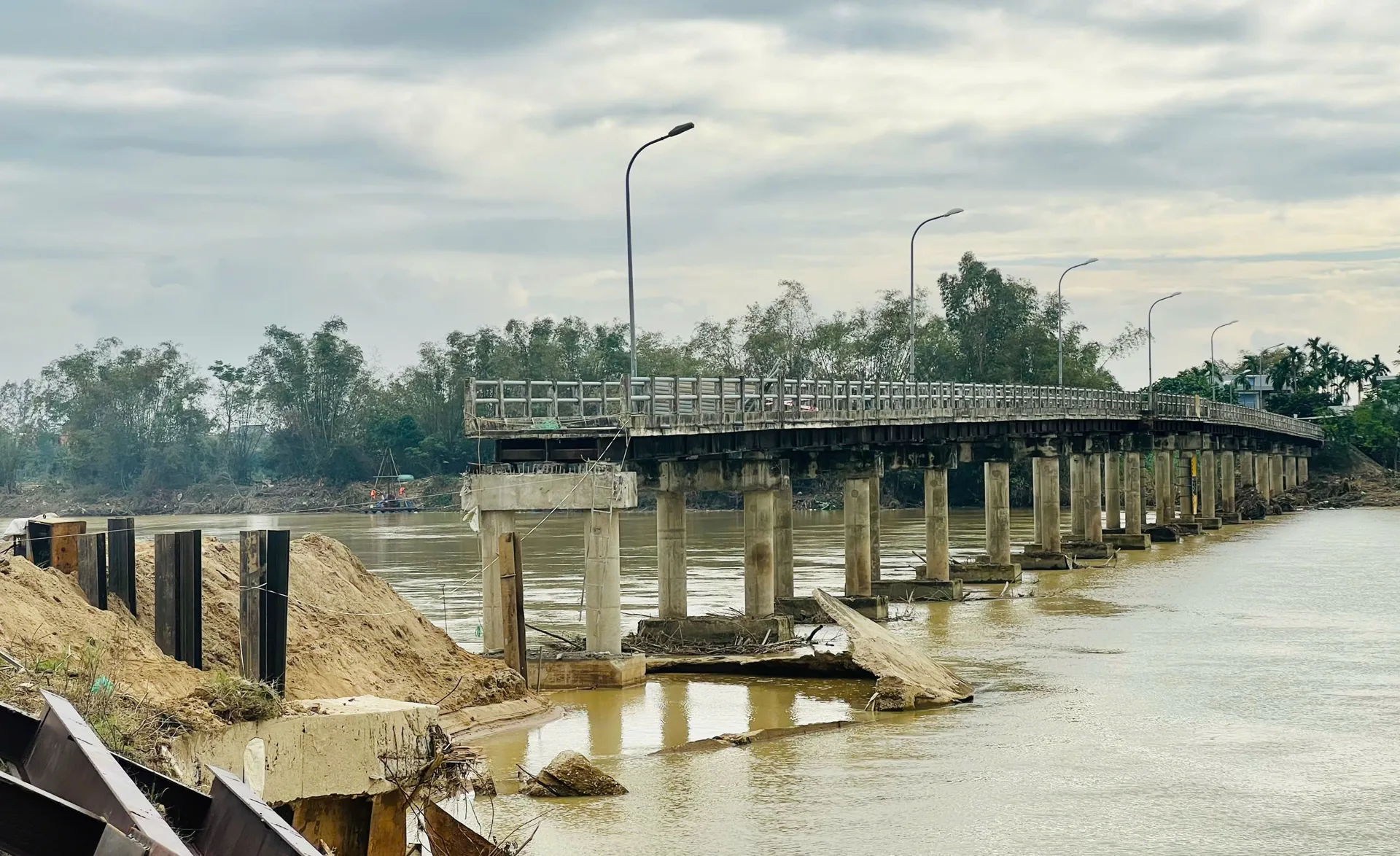 Nước lũ dâng cao còn khiến các hạng mục công trình phụ như đường dẫn, biển báo giao thông, hệ thống đèn chiếu sáng… bị hư hỏng, cuốn trôi. Lượng lớn đất cát, rác thải vẫn còn nguyên tại những điểm thấp, vùng trũng ven sông, dưới chân cầu.