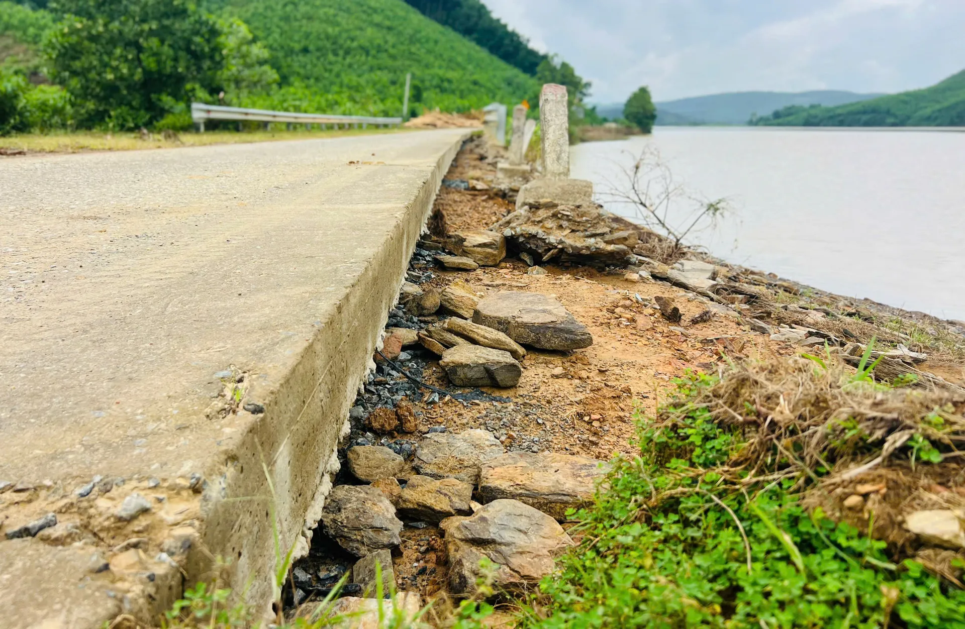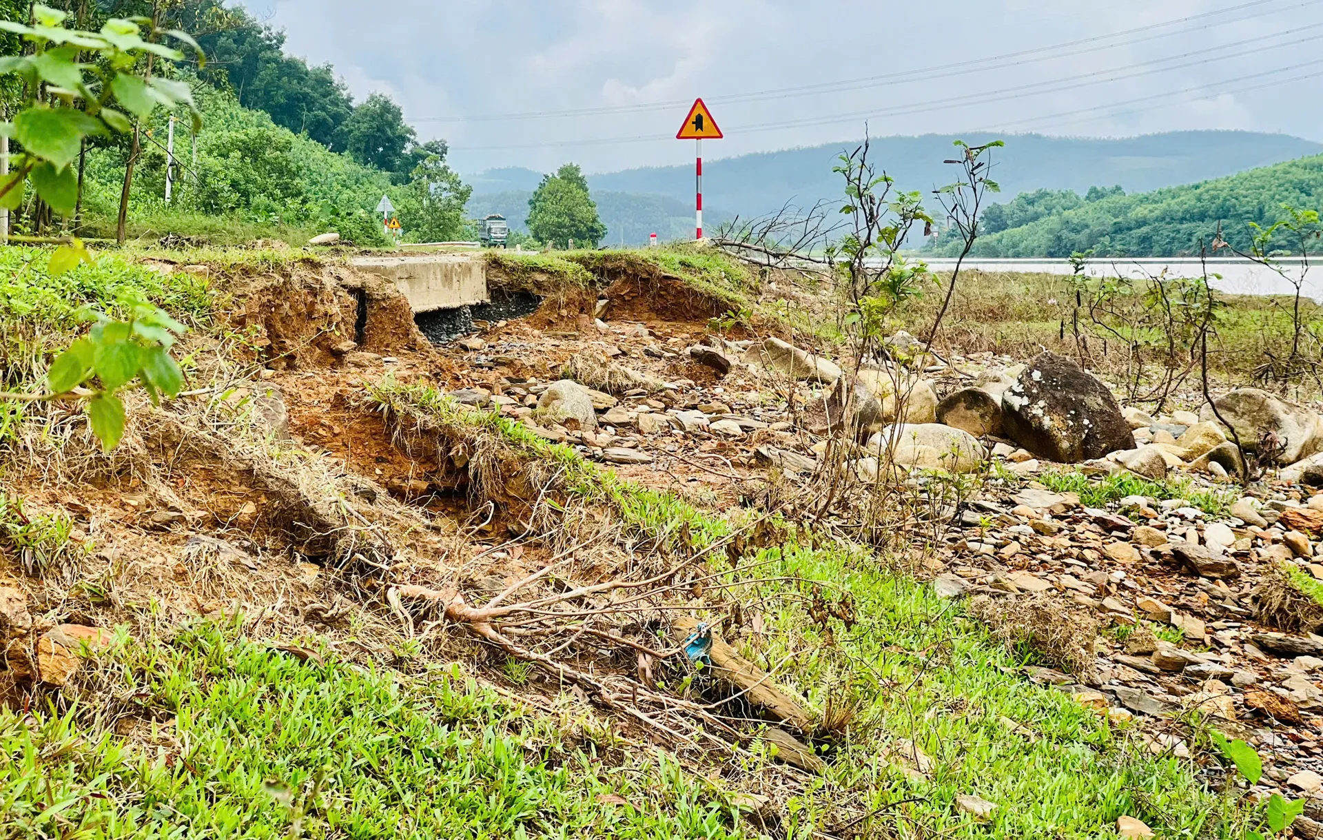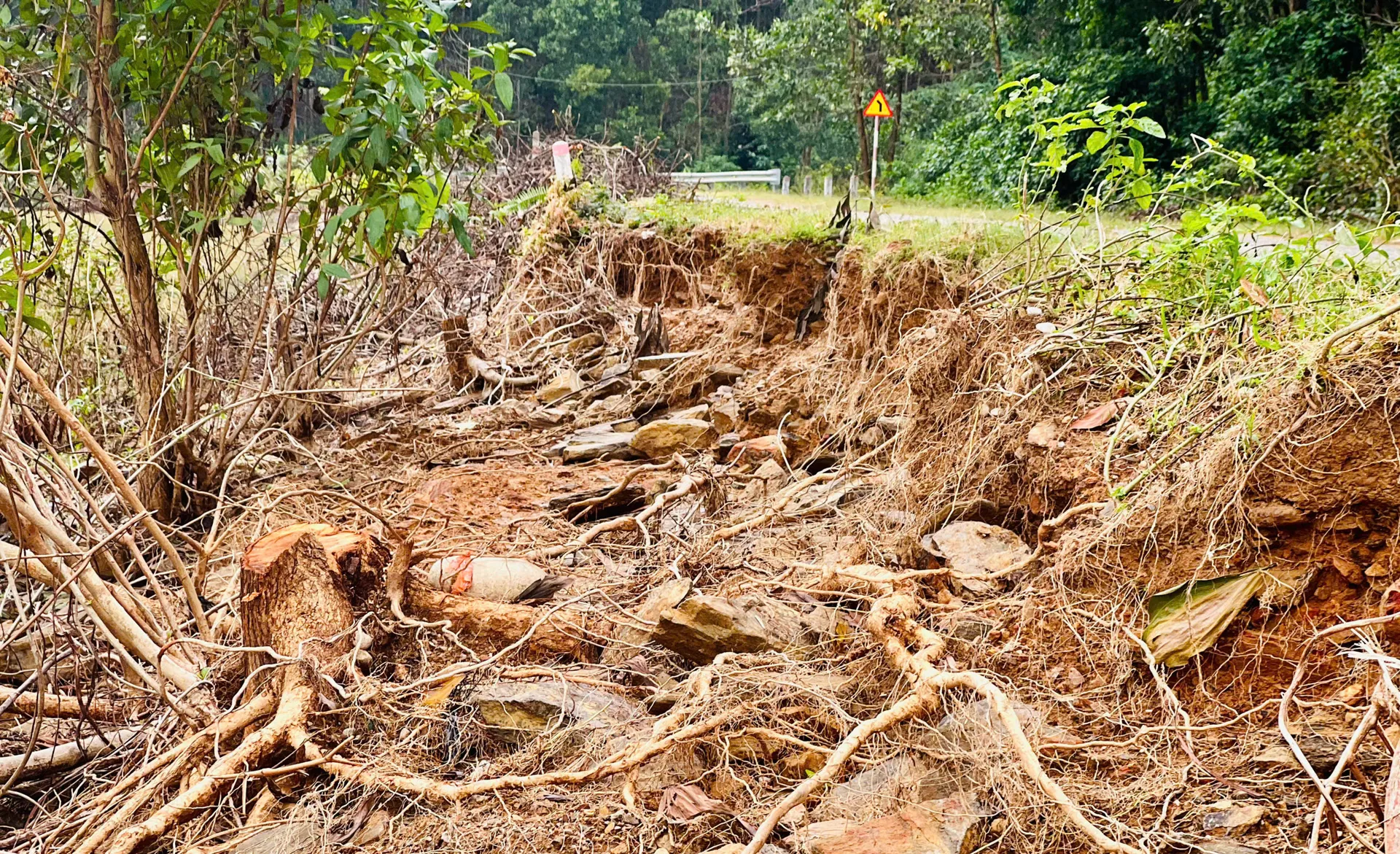 Nước chảy siết còn làm một số khu vực đất đá bị xói lở nghiêm trọng, taluy nền đường xuất hiện nhiều điểm hư hỏng. Nhiều điểm hư hỏng kéo dài hơn 20m và độ sâu 1-2m.