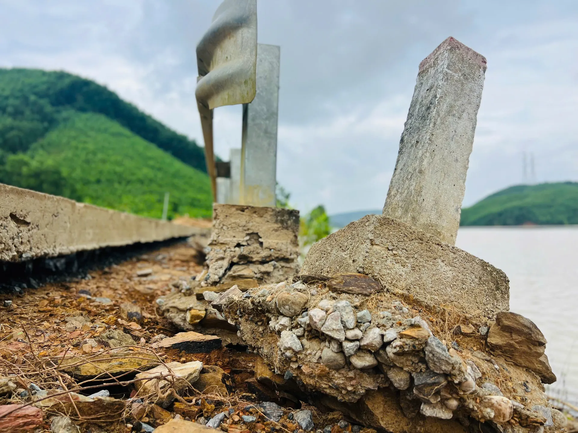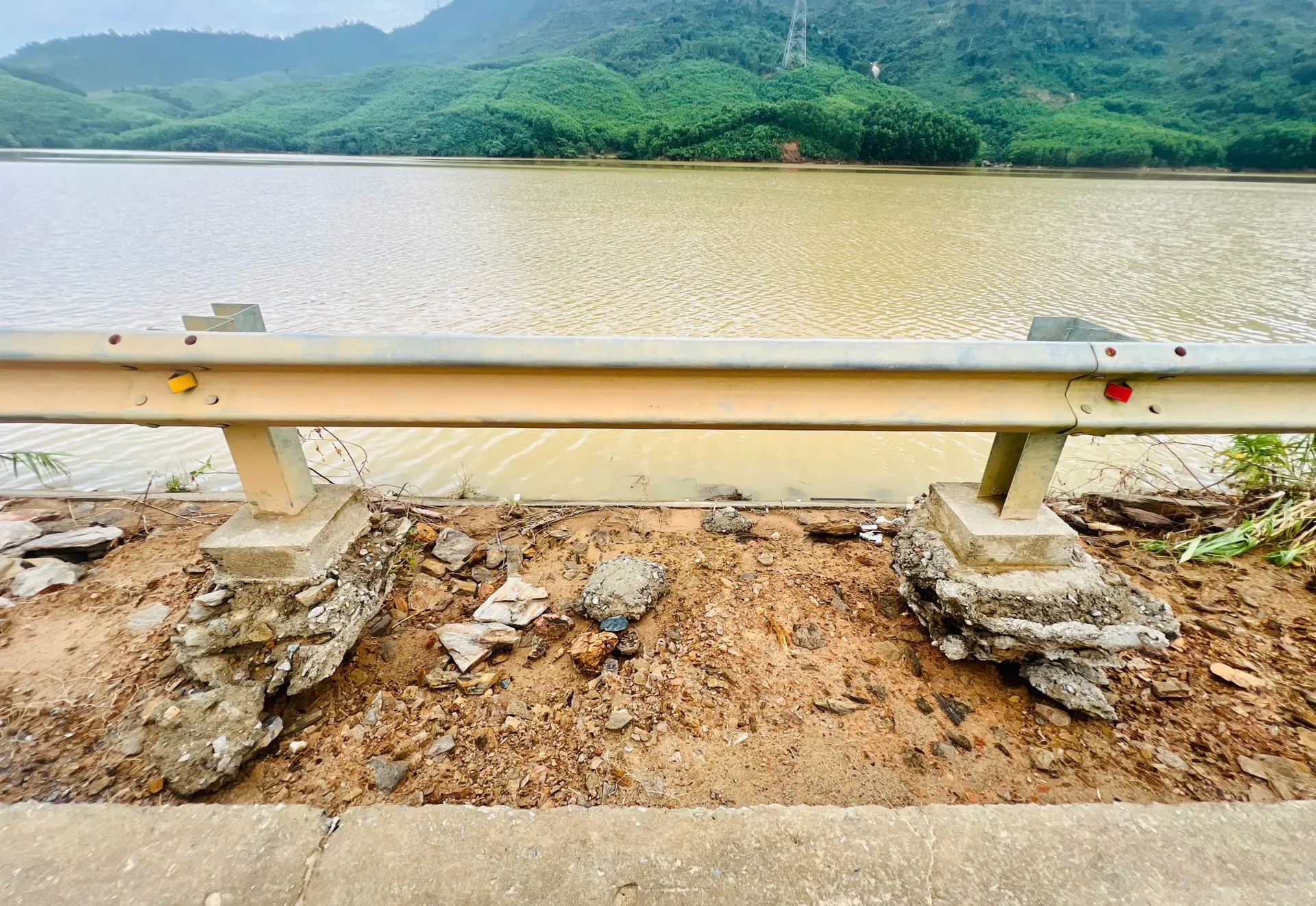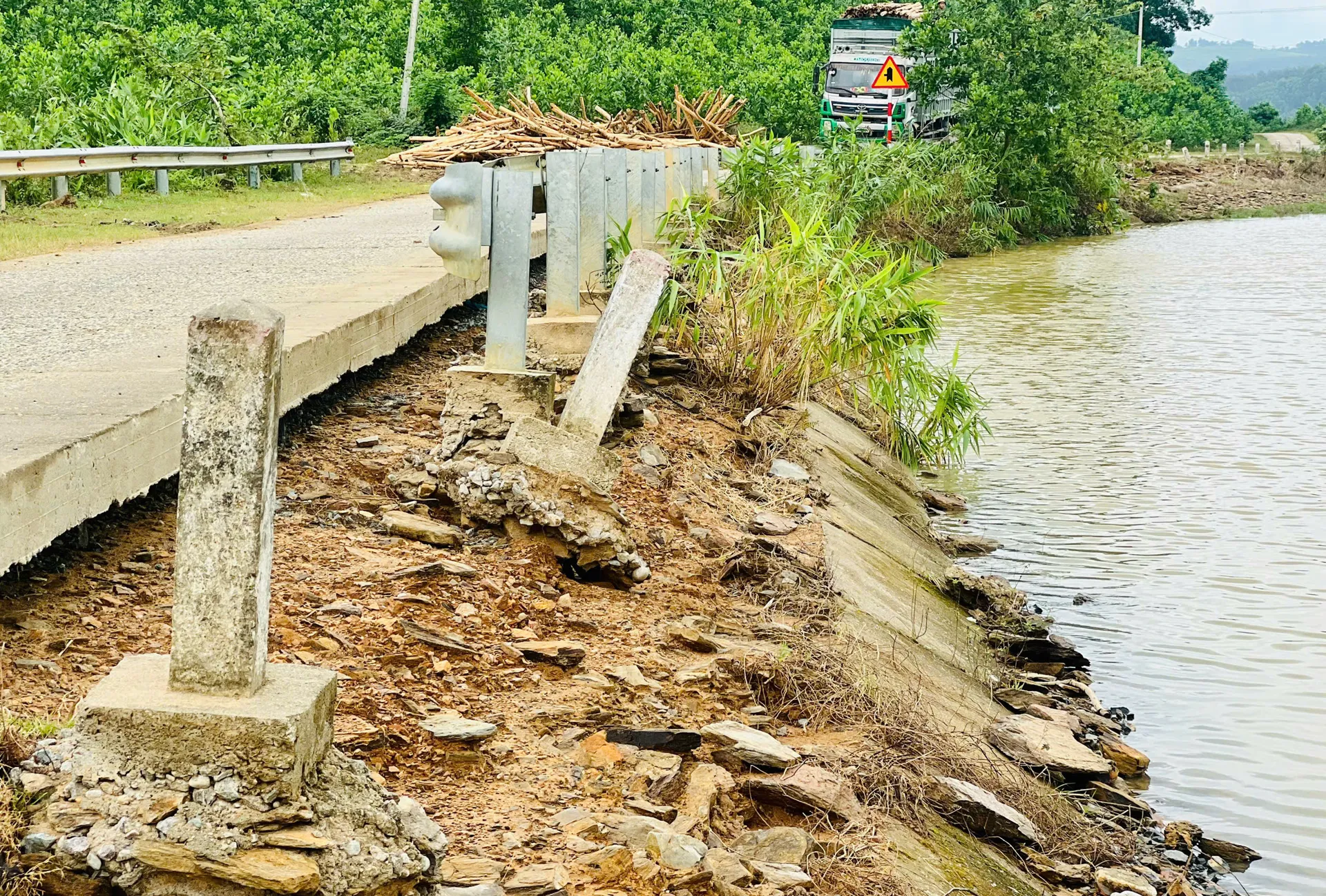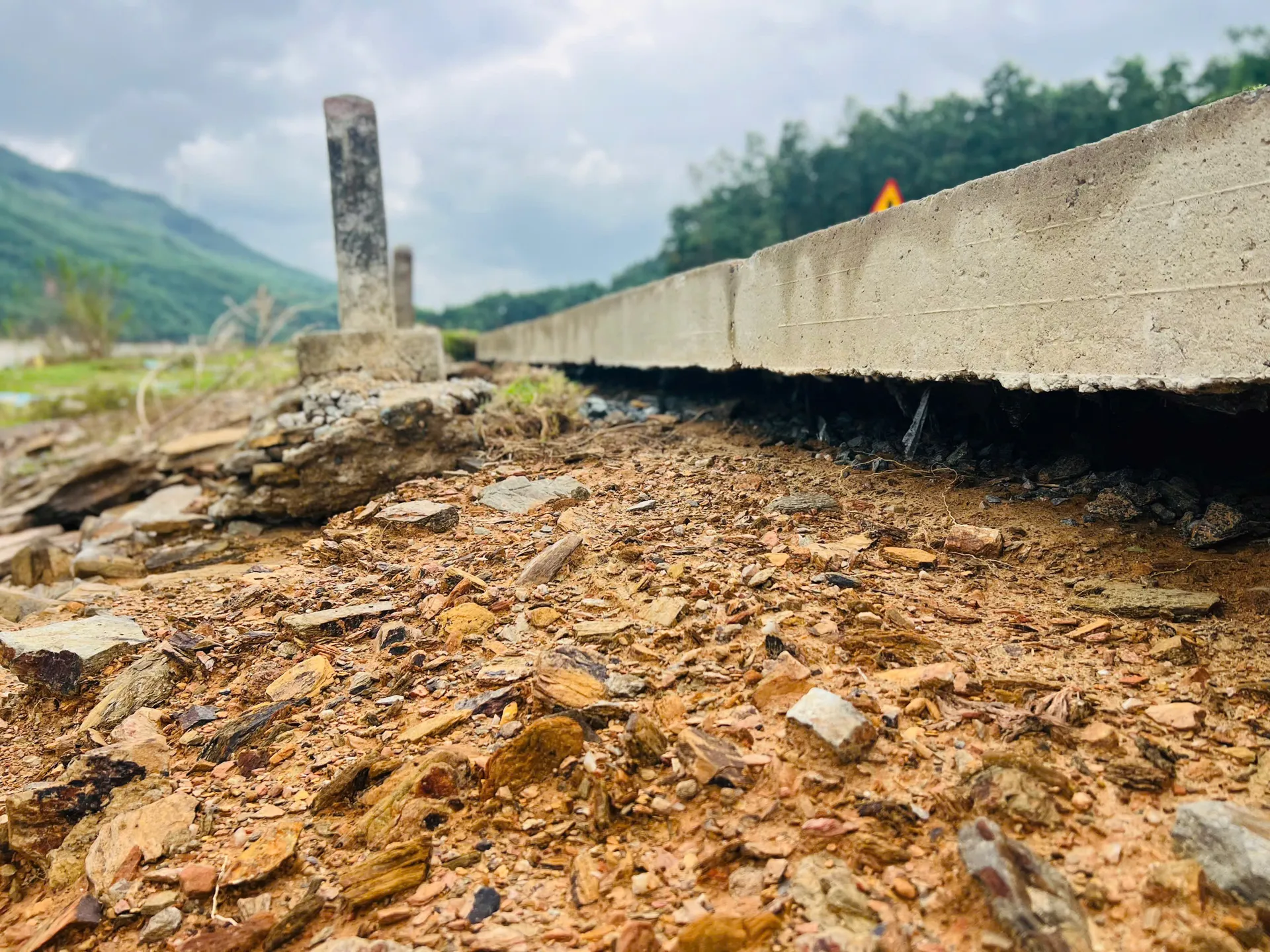 Nước chảy siết còn làm một số khu vực đất đá bị xói lở nghiêm trọng, taluy nền đường xuất hiện nhiều điểm hư hỏng. Nhiều điểm hư hỏng kéo dài hơn 20m và độ sâu 1-2m.