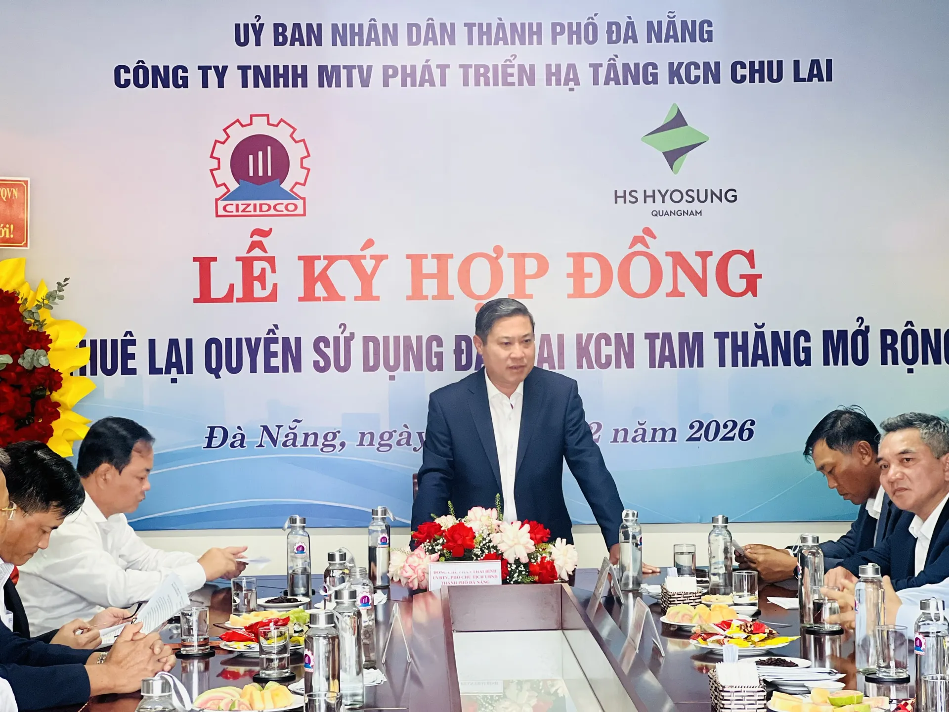 Dịp này, Công ty TNHH HS Hyosung Quảng Nam đã ký kết hợp đồng thuê lại quyền sử dụng đất tại Khu công nghiệp Tam Thăng mở rộng với diện tích khoảng 21ha. Tổng diện tích sử dụng đất là 34,76ha. Cụ thể, diện tích thuộc Khu công nghiệp Tam Thăng đã đầu tư 13,76ha, diện tích tại Khu công nghiệp Tam Thăng mở rộng là 21ha. Tổng tiền cho thuê đất tương đương 220 tỷ đồng.