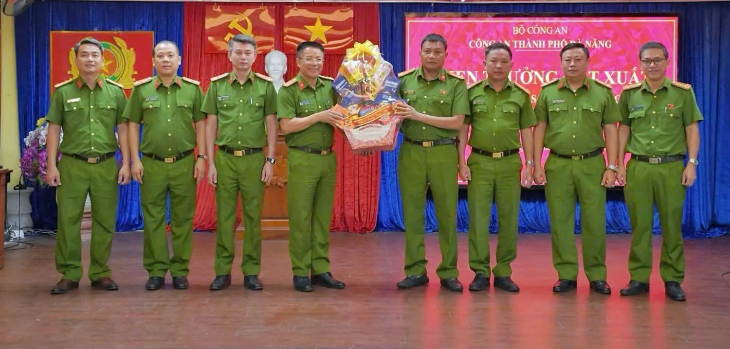 Lãnh đạo Công an thành phố Đà Nẵng khen thưởng đột xuất Phòng Cảnh sát hình sự. Ảnh: CADN