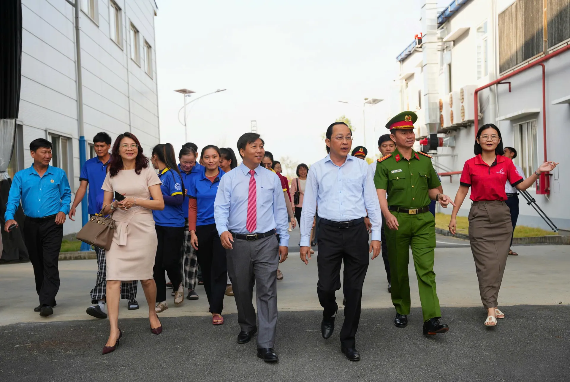 Ông Nguyễn Văn Lượm, Bí thư xã Thăng Bình ã trao quà động viên, lì xì đầu năm cho công nhân viên. Song song, đoàn địa phương cũng trực tiếp tham quan xưởng sản xuất, thăm hỏi người lao động.