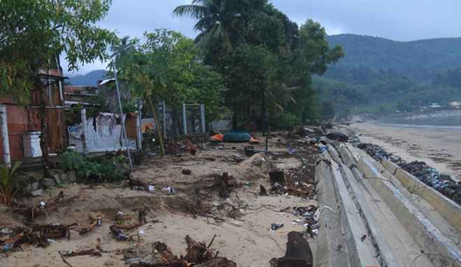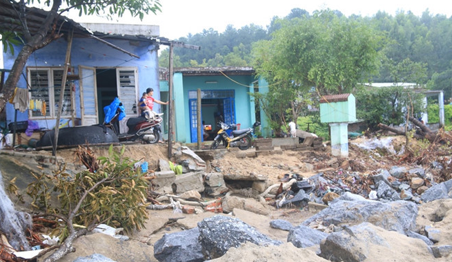 Trao đổi với Chủ tịch UBND phường Hòa Hiệp Bắc Trương Việt được biết, trong cơn bão số 12 vừa qua nước biển dâng cao, xâm thực vào bờ và ảnh hưởng trực tiếp đến 6 hộ gia đình trên địa bàn phường.
