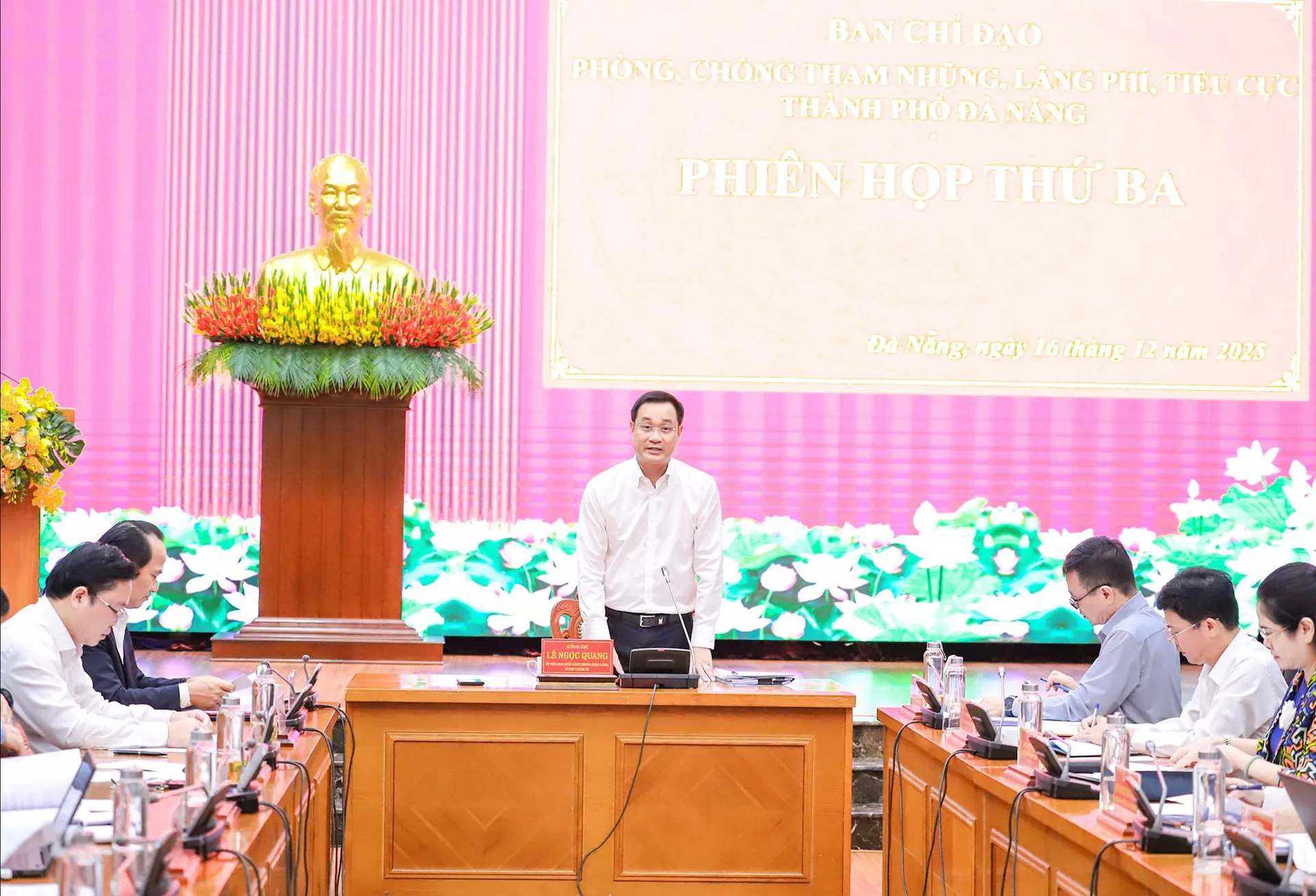 Kinhtedothi - Sáng 16/12/2025, Ban Chỉ đạo về phòng, chống tham nhũng, lãng phí, tiêu cực thành phố Đà Nẵng (Ban Chỉ đạo) đã tổ chức phiên họp lần thứ 3 - phiên họp cuối năm - để thảo luận, cho ý kiến về kết quả công tác năm 2025, chương trình công tác, chương trình kiểm tra, giám sát năm 2026 và việc chỉ đạo, xử lý các vụ việc, vụ án thuộc diện theo dõi. Phiên họp do ông Lê Ngọc Quang, Ủy viên Trung ương Đảng, Bí thư Thành ủy, Trưởng Ban Chỉ đạo chủ trì.