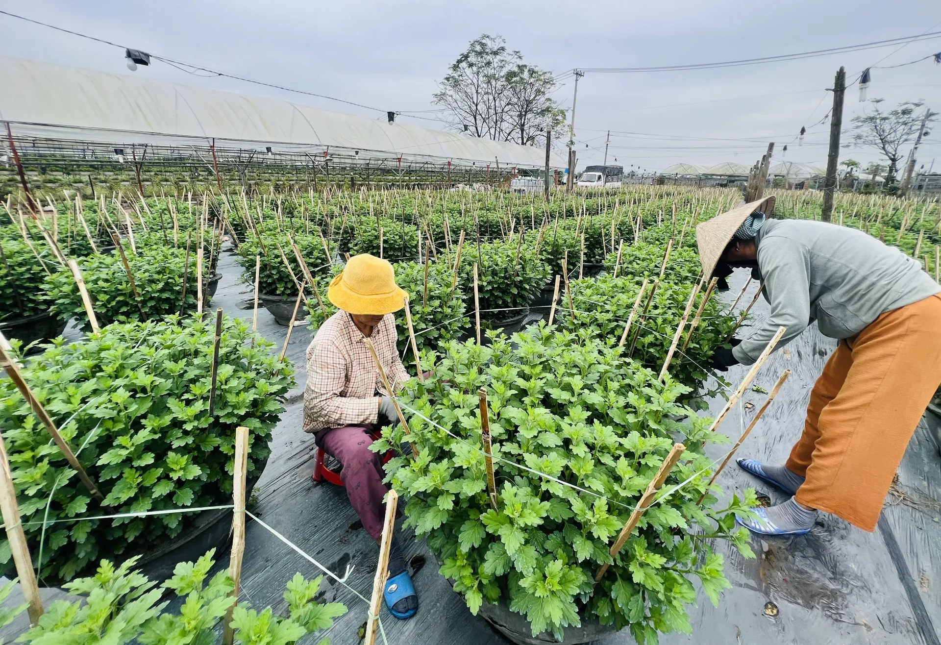 Những ngày này, người dân làng hoa Dương Sơn (TP Đà Nẵng) đang tất bật chăm sóc, cắt tỉa cành lá, chong đèn, bắt đầu bước vào vụ hoa Tết 2026.