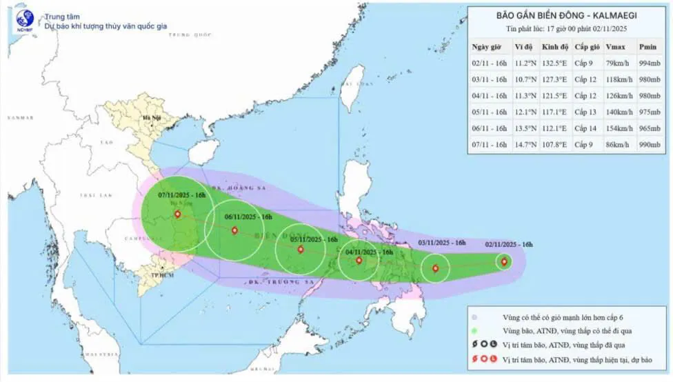 Ngoài ra, trên vùng biển phía Đông miền Trung Philippines đang xuất hiện bão KALMAEGI, dự kiến đi vào Biển Đông ngày 5/11, có khả năng ảnh hưởng trực tiếp đến khu vực miền Trung.