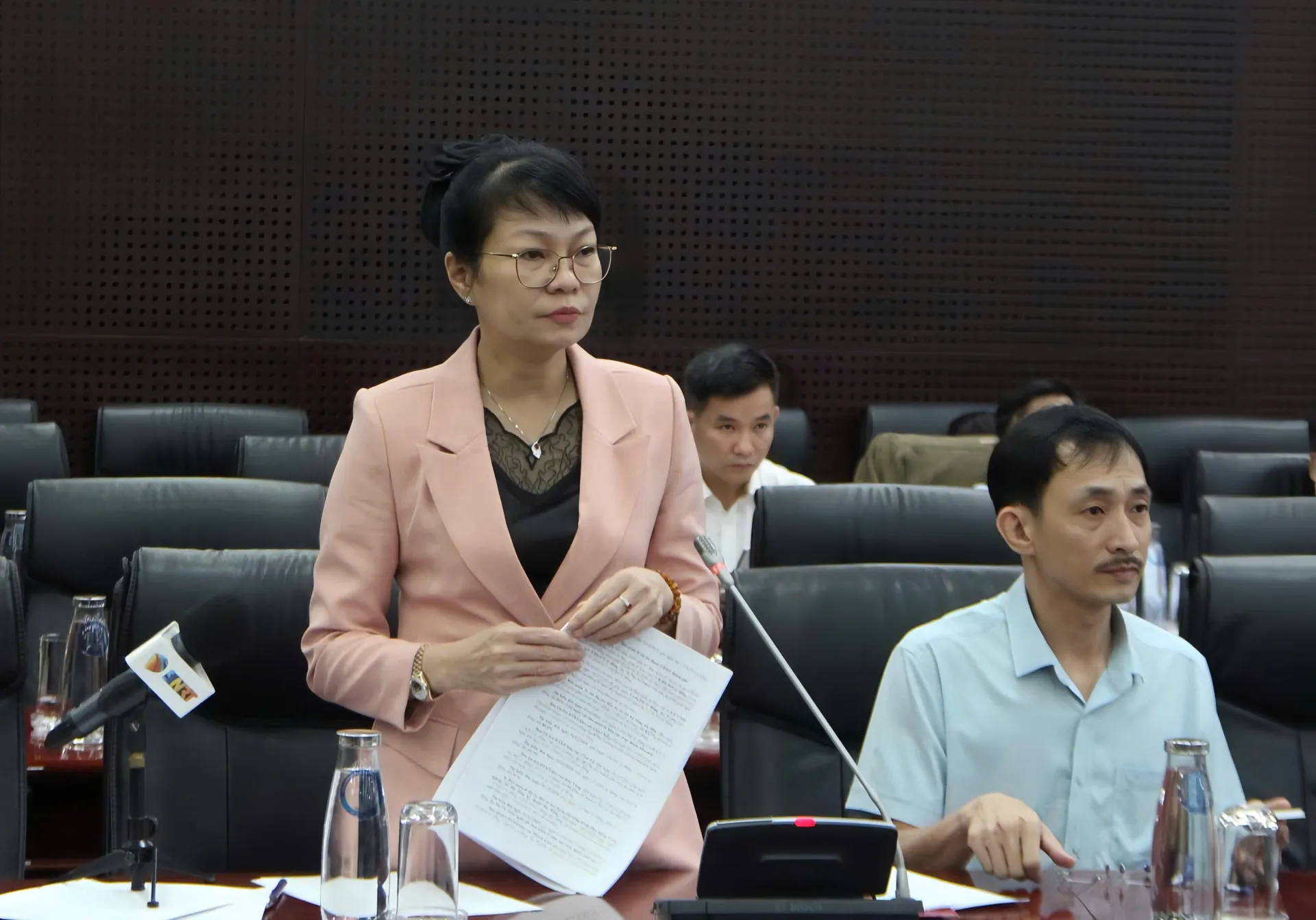 Giám đốc Sở Tài chính thành phố Trần Thị Thanh Tâm báo cáo tại cuộc họp