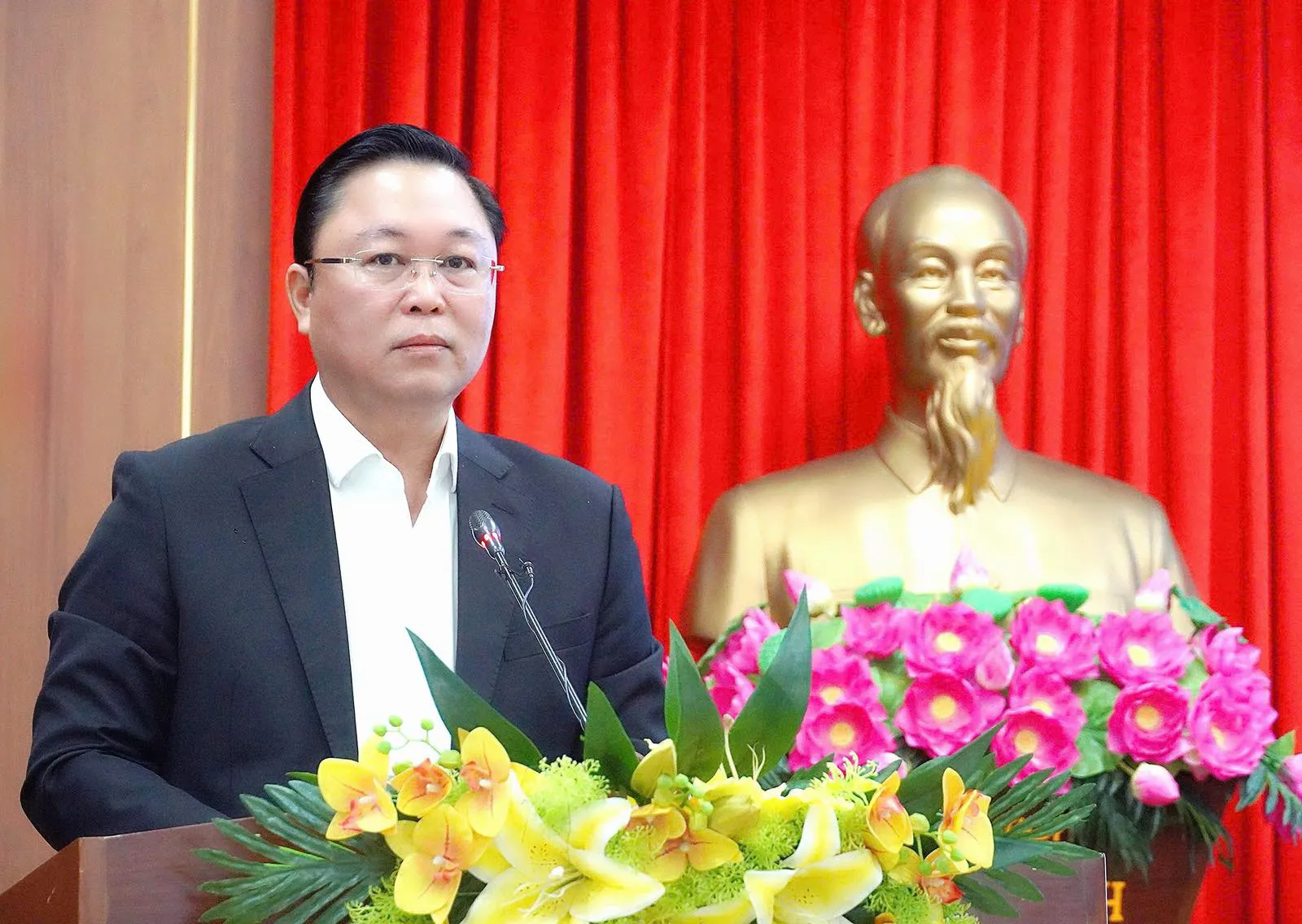 Chủ tịch Ủy ban MTTQ Việt Nam thành phố Lê Trí Thanh phát biểu khai mạc hội nghị.