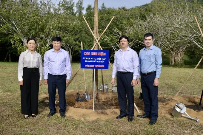 Đoàn đại biểu Ủy ban Mặt trận Tổ quốc Việt Nam TP Hà Nội thực hiện trồng cây lưu niệm (ảnh: sggp.org.vn)