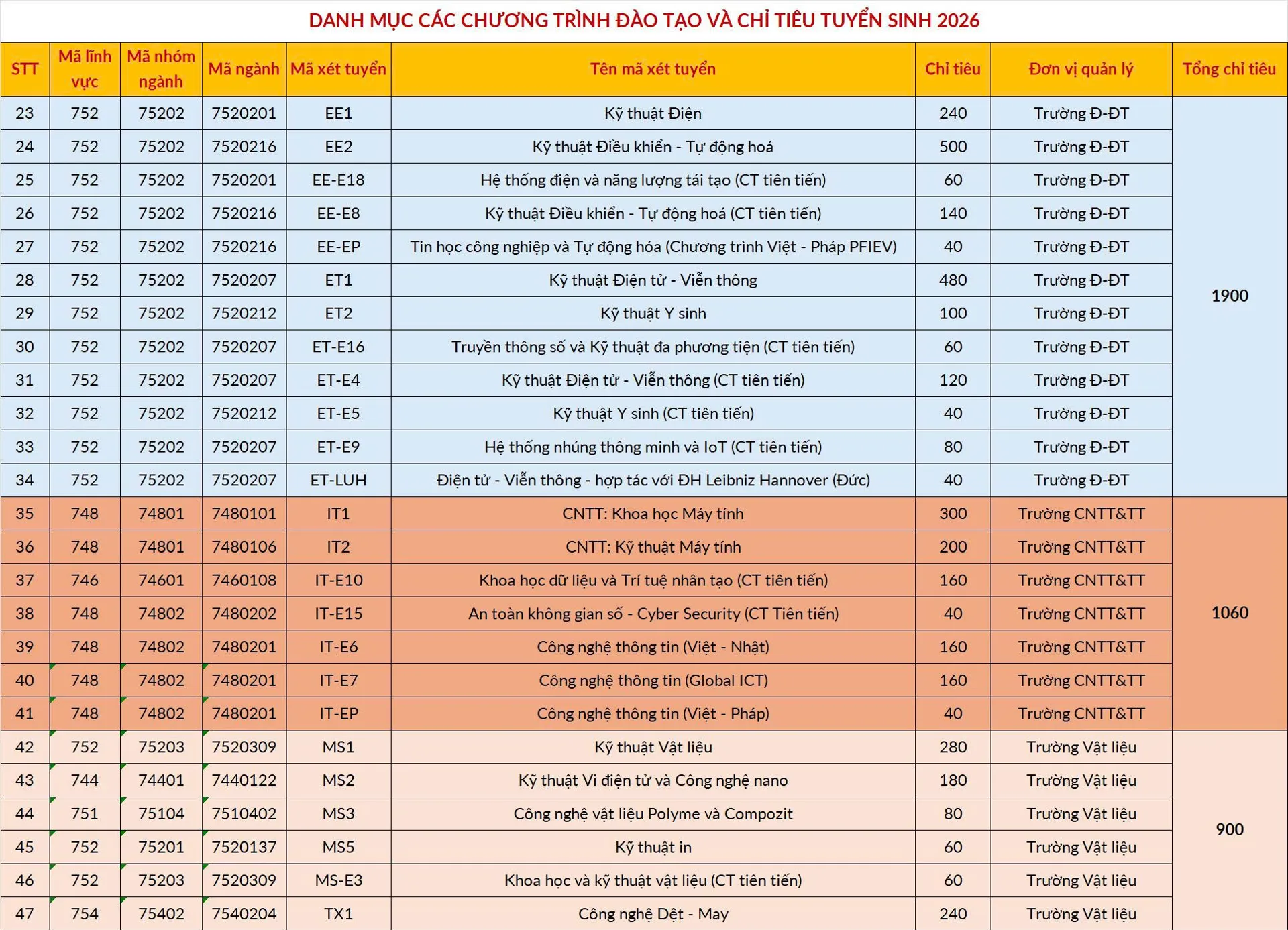68 chương trình đào tạo của Đại học Bách khoa Hà Nội năm 2026.