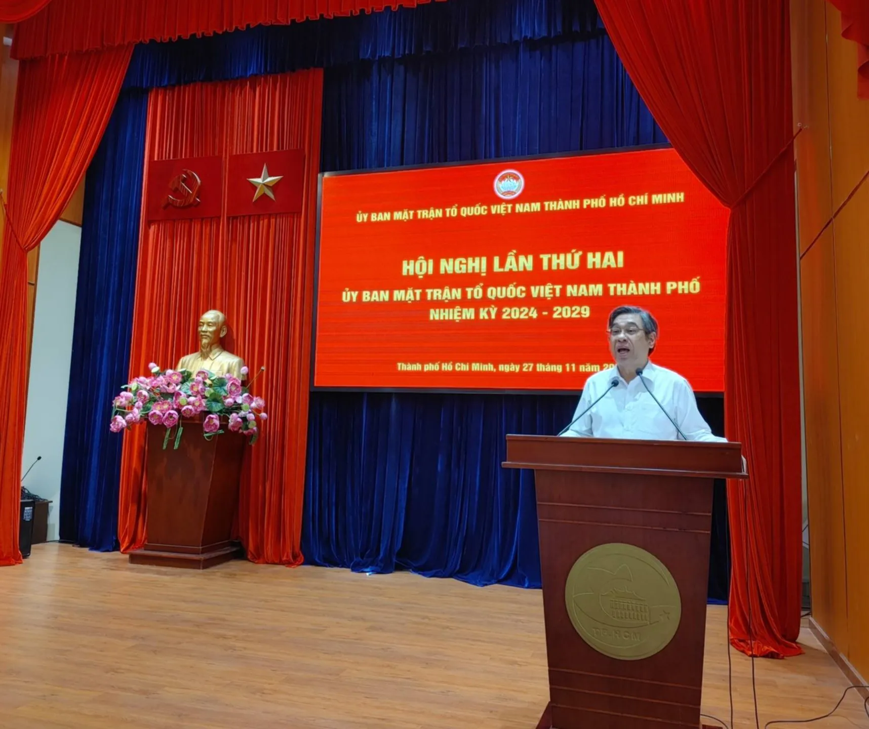 Sáng 27/11, Ủy ban MTTQ Việt Nam TP Hồ Chí Minh nhiệm kỳ 2024 – 2029, tổ chức hội nghị lần thứ hai để báo cáo một số nội dung chuẩn bị Đại hội đại biểu MTTQ Việt Nam TP lần thứ I, nhiệm kỳ 2025 – 2030 và thực hiện quy trình công nhận các tổ chức thành viên; hiệp thương, kiện toàn nhân sự ủy viên Ủy ban MTTQ Việt Nam TP nhiệm kỳ 2024 - 2029.