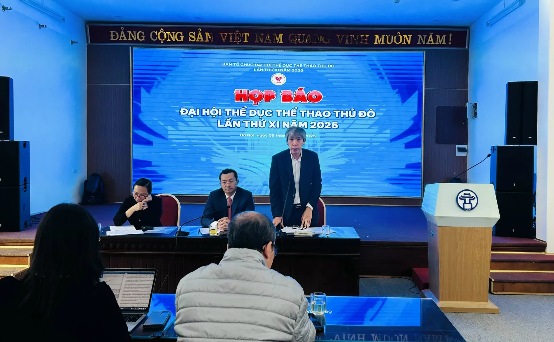 Phóng viên đặt câu hỏi tới Ban Tổ chức về Đại hội Thể dục Thể thao Thủ đô lần thứ XI năm 2025.