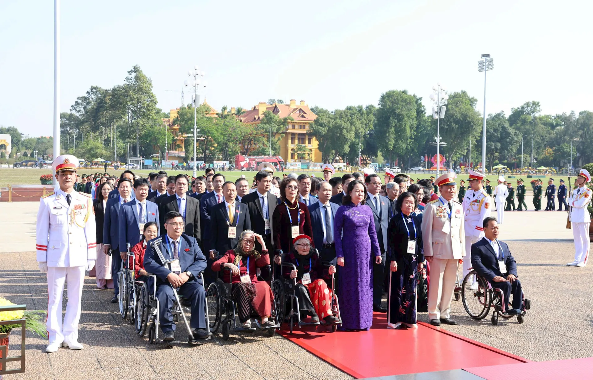 Phó Chủ tịch nước Võ Thị Ánh Xuân và các đại biểu dự Đại hội Thi đua yêu nước toàn quốc lần thứ XI đặt vòng hoa và vào Lăng viếng Chủ tịch Hồ Chí Minh, chiều 26/12