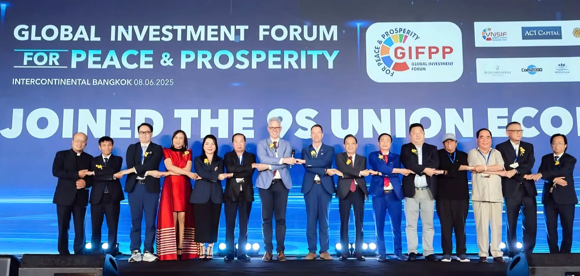 Đại diện doanh nhân 12 Quốc gia thực hiện nghi thức cam kết tham gia và phát triển 9S UNION tại Bangkook ngày 8/6/2025.