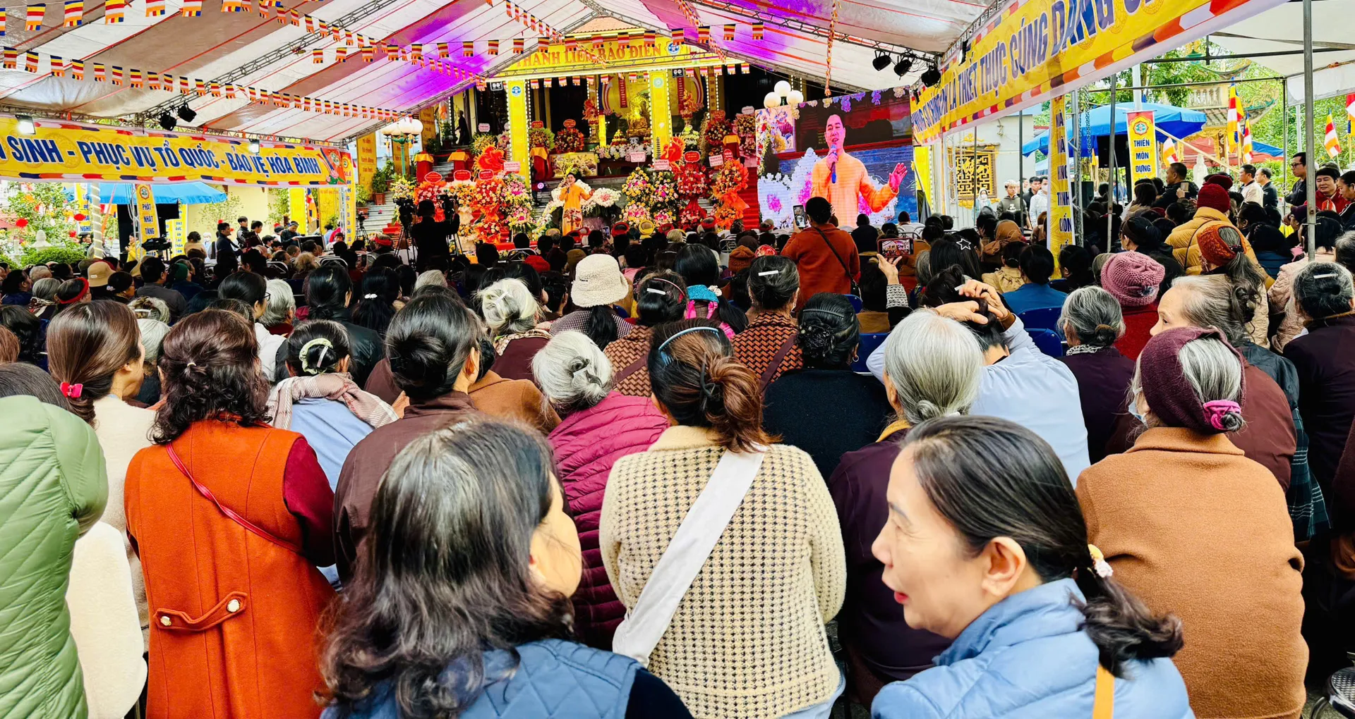 Kết thúc buổi lễ, chư tôn đức giáo phẩm, đại biểu và Nhân dân đã thực hiện nghi thức cắt băng khánh thành, dâng hương tại chính điện, cầu nguyện quốc thái dân an trong không khí trang nghiêm, hoan hỷ và an lạc.