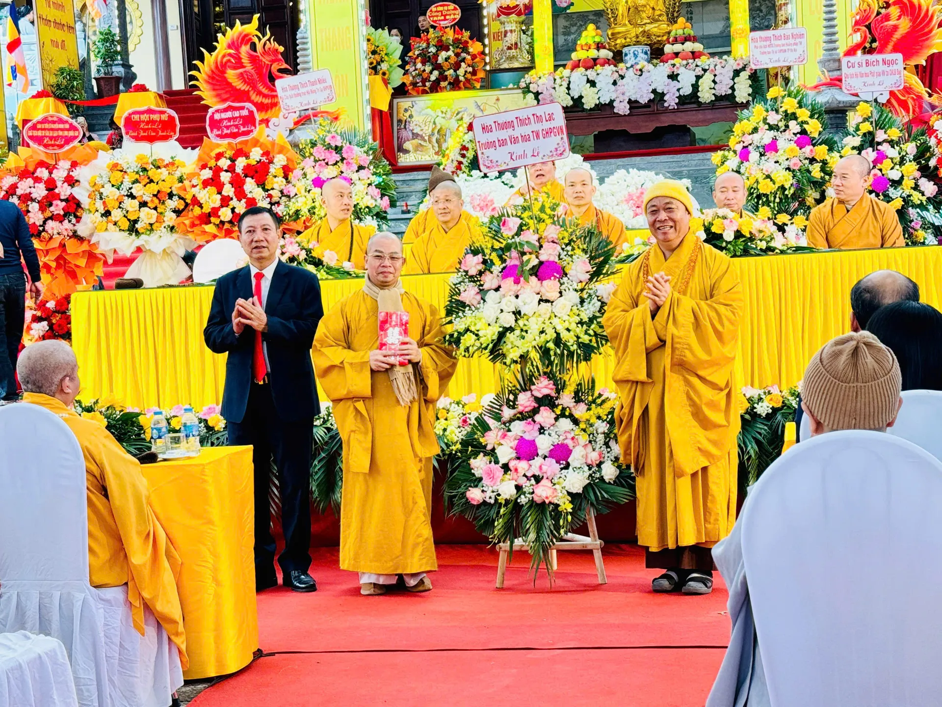 Đại diện Giáo hội Phật giáo Việt Nam tặng hoa chúc mừng lễ khánh thành.