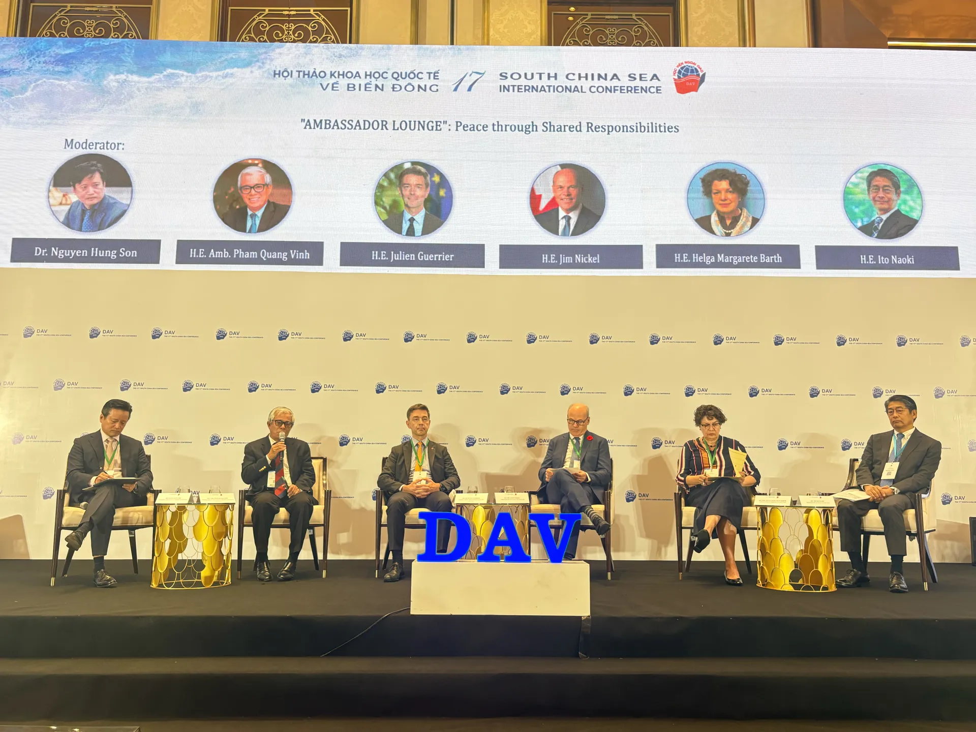 Trong khuôn khổ phiên đặc biệt “Trò chuyện giữa các Đại sứ - Chia sẻ trách nhiệm hướng tới hòa bình” (Ambassadors’ Talk - Sharing Responsibilities towards Peace) của Hội thảo Quốc tế Biển Đông lần thứ 17, do Học viện Ngoại giao chủ trì sáng ngày 4/11 tại Đà Nẵng, các đại sứ và chuyên gia từ Việt Nam, EU, Nhật Bản, Canada, Đức và Singapore đã trao đổi về vai trò của luật pháp quốc tế, cơ chế hợp tác khu vực và giải pháp duy trì hòa bình, ổn định tại Biển Đông.