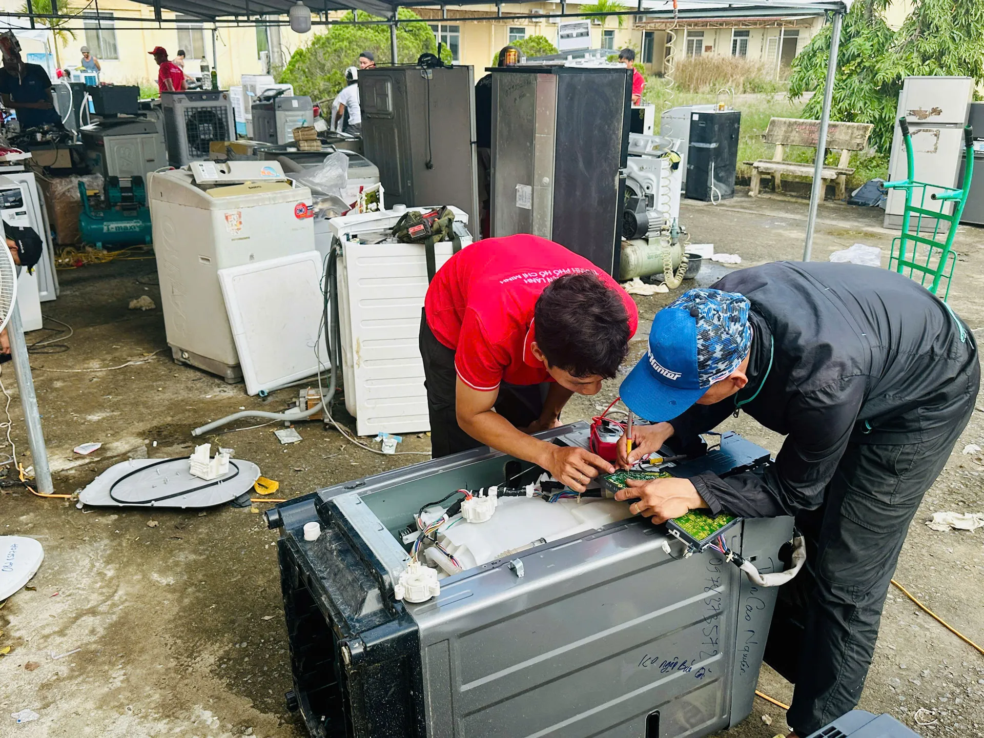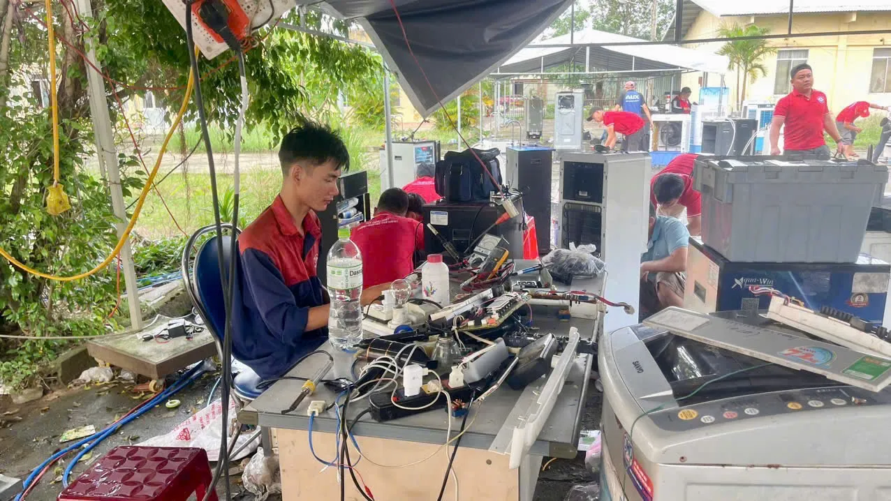 Số lượng thiết bị cần được sửa chữa rất nhiều nên các thành viên Hội Điện lạnh TP Hồ Chí Minh luôn tập trung cao độ cho công việc.