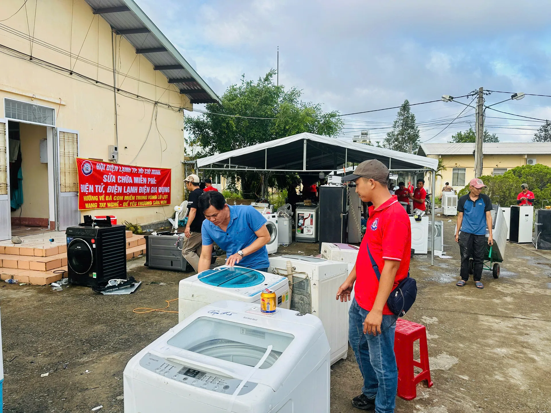 Nắm bắt được những khó khăn mà người dân vùng lũ đang phải đối mặt, các đoàn thiện nguyện đã không quản ngại đường xa để đến với Đắk Lắk. Trong số đó, Hội Điện lạnh TP Hồ Chí Minh đã tổ chức một đoàn tình nguyện quy mô lớn, mang theo dụng cụ, phụ tùng và chuyên môn để thực hiện chương trình sửa chữa thiết bị điện, điện lạnh miễn phí.