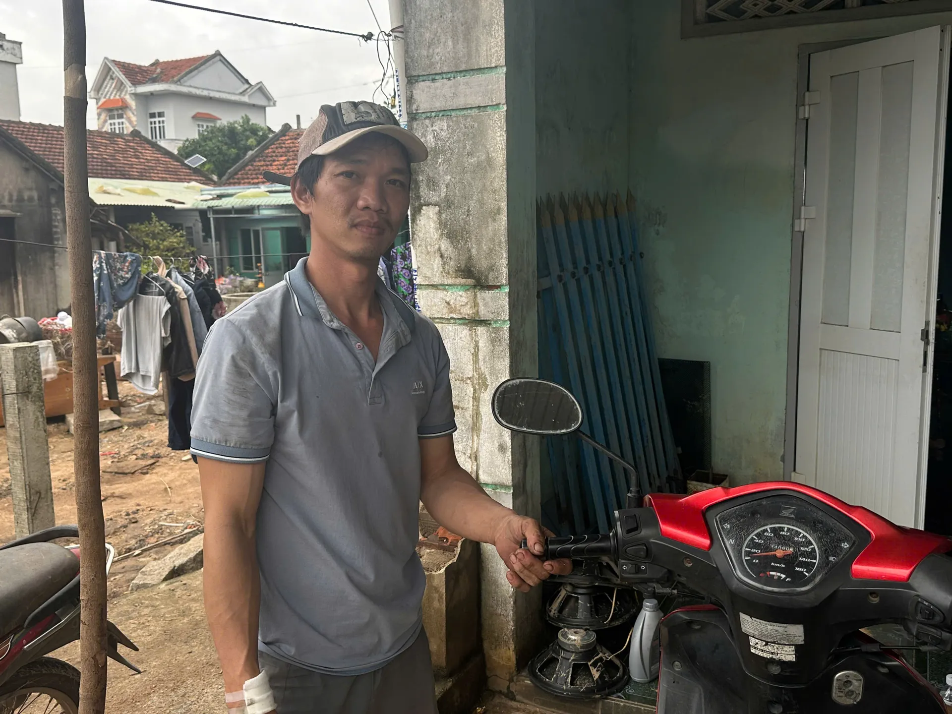Anh Cao Minh Dũ (trú tại xã Phú Khê 1, xã Hòa Xuân) là người chủ động sửa chữa miễn phí xe máy cho người dân bị ngập lụt.