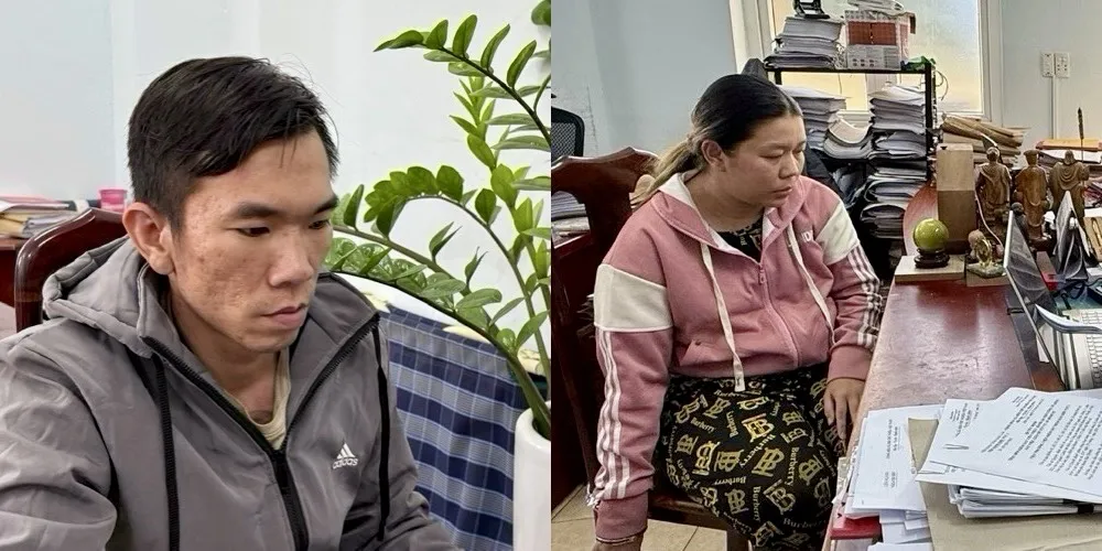 Hai đối tượng Thái và Liên tại cơ quan Công an.