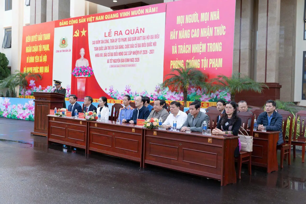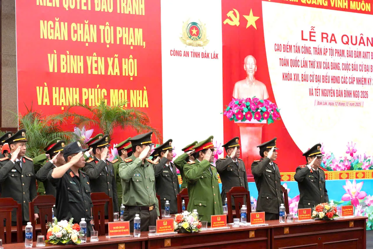 Ngày 12/12, Công an tỉnh Đắk Lắk đã long trọng tổ chức Lễ ra quân mở đợt cao điểm tấn công, trấn áp tội phạm, với mục tiêu trọng tâm là đảm bảo tuyệt đối ANTT cho các sự kiện chính trị trọng đại của đất nước sắp diễn ra. Cụ thể, đợt cao điểm này tập trung phục vụ và bảo vệ an toàn cho Đại hội đại biểu toàn quốc lần thứ XIV của Đảng, cuộc bầu cử đại biểu Quốc hội khóa XVI, bầu cử đại biểu HĐND các cấp nhiệm kỳ 2026 – 2031, cùng với việc giữ vững bình yên trong dịp Tết Nguyên đán Bính Ngọ 2026.