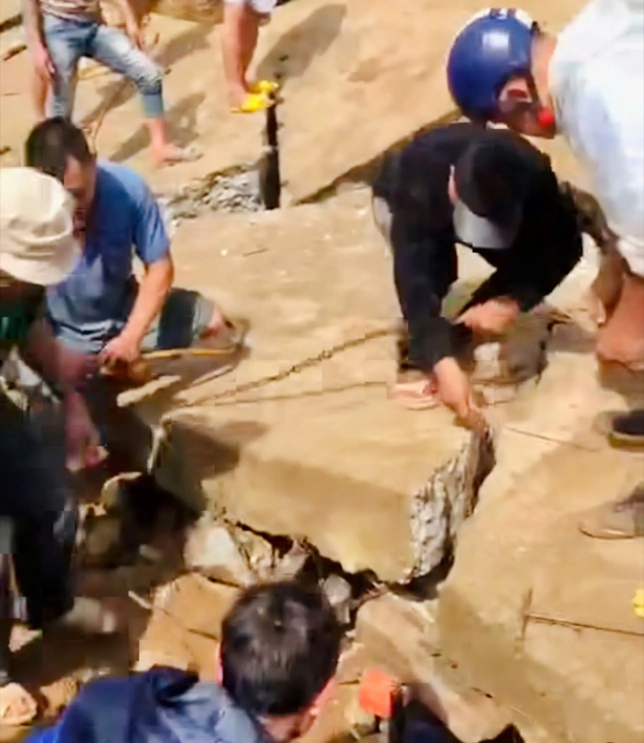 Theo thông tin, vào thời điểm trên, khu vực này bất ngờ xuất hiện mưa lớn. Để tránh mưa, cả 4 người đã cùng nhau vào trú bên dưới “hàm ếch” của một mảng bê tông thuộc hệ thống đường bờ kè.