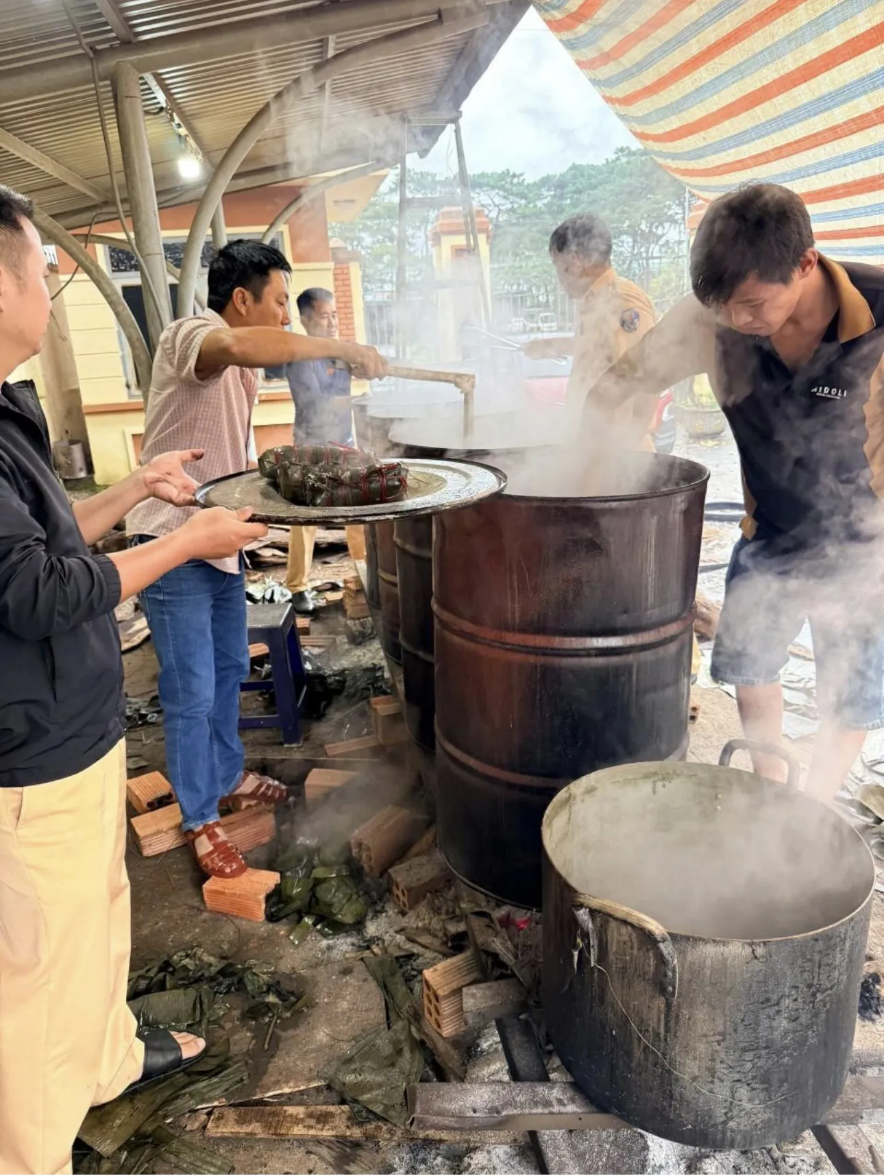 Nhằm kịp thời chia sẻ và hỗ trợ người dân vượt qua giai đoạn ảnh hưởng nặng nề do thiên tai, Phòng Cảnh sát giao thông (CSGT) Công an tỉnh Đắk Lắk đã tổ chức một hoạt động nhân văn, đậm nghĩa tình: nấu bánh chưng, bánh tét hỗ trợ bà con vùng lũ. Ảnh: PC 08 Đắk Lắk