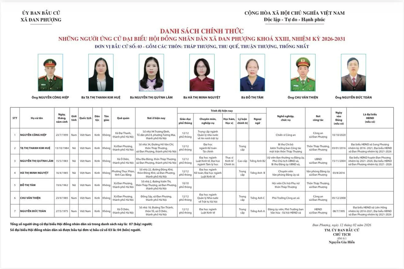 Đan Phượng công bố danh sách chính thức người ứng cử đại biểu HĐND xã nhiệm kỳ 2026 - 2031