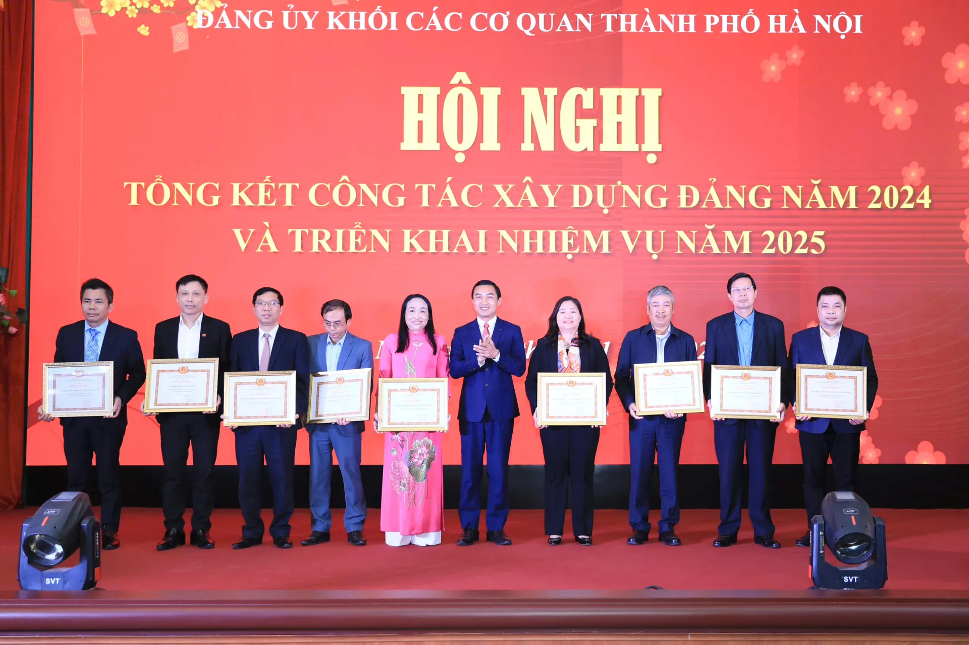 Nhằm kịp thời ghi nhận, biểu dương các tập thể, cá nhân tiêu biểu có thành tích trong công tác xây dựng Đảng năm 2024, tại Hội nghị, Ban Thường vụ Đảng ủy Khối các cơ quan TP Hà Nội đã tiến hành trao Bằng khen của Ban Thường vụ Thành ủy tặng 10 tập thể, 10 cá nhân có thành tích xuất sắc trong công tác xây dựng Đảng và thực hiện nhiệm vụ chính trị năm 2024 (trong đó có Đảng bộ Báo Kinh tế & Đô thị).