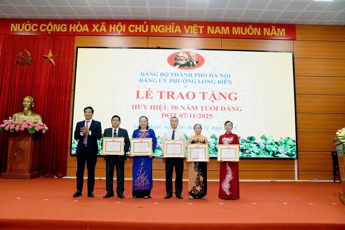 Buổi Lễ trao tặng Huy hiệu Đảng đợt 7/11/2025 đã diễn ra trong không khí trang trọng, phấn khởi, tiếp thêm động lực để toàn Đảng bộ phường Long Biên tiếp tục đoàn kết, nỗ lực phấn đấu, quyết tâm xây dựng Đảng bộ trong sạch, vững mạnh, hoàn thành xuất sắc mọi nhiệm vụ chính trị được giao.
