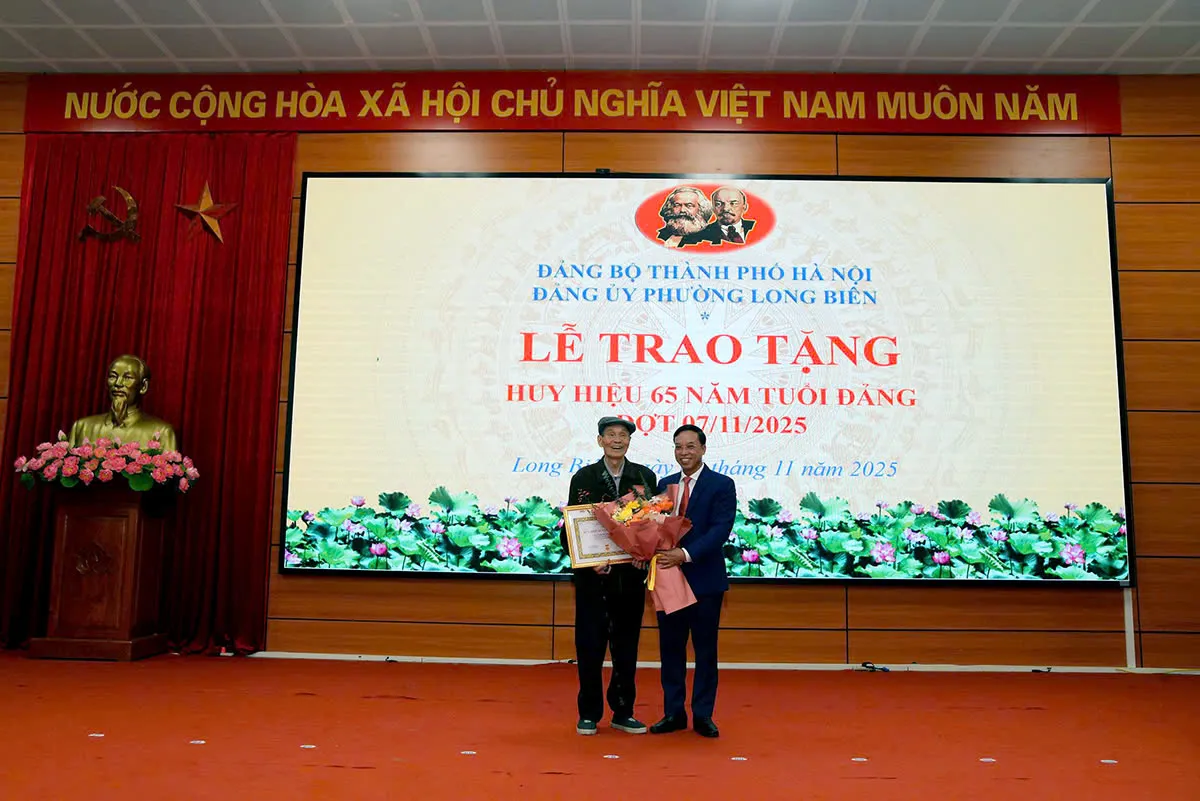 Kinhtedothi - Chiều 6/11, Đảng ủy phường Long Biên đã long trọng tổ chức Lễ trao tặng Huy hiệu Đảng đợt tháng 07/11/2025. Buổi lễ là sự kiện chính trị quan trọng, nhằm tôn vinh, tri ân những cống hiến to lớn của các đảng viên lão thành, đồng thời khơi dậy tinh thần phấn đấu, rèn luyện của thế hệ đảng viên hôm nay.