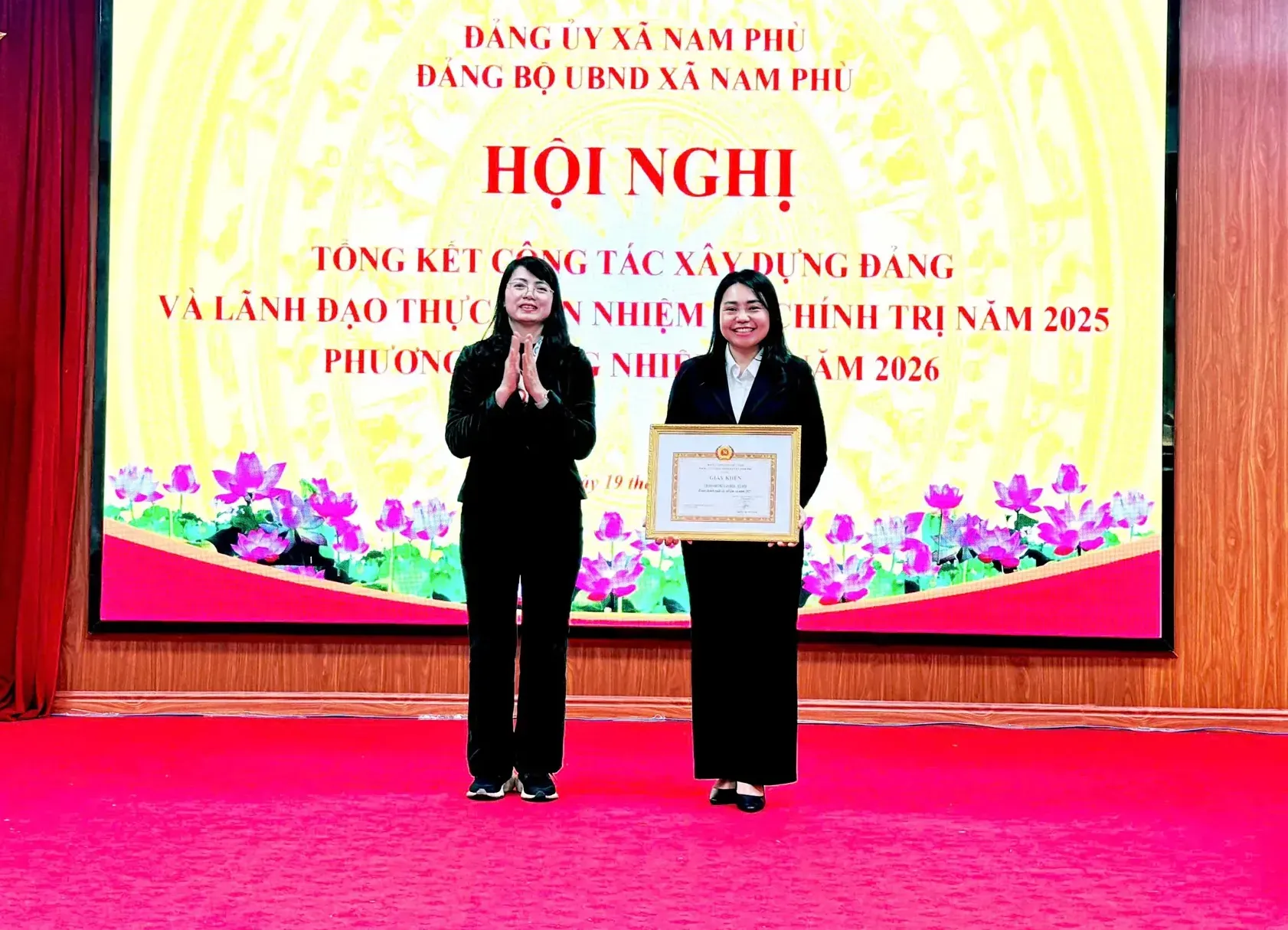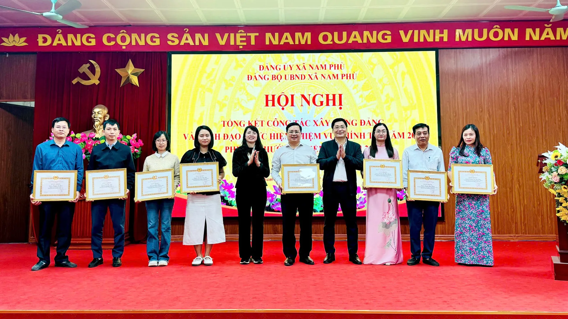 Nhân dịp này, Đảng bộ UBND xã Nam Phù đã khen thưởng Chi bộ Phòng Văn hóa – Xã hội và 9 cá nhân có thành tích xuất sắc trong công tác xây dựng Đảng năm 2025.