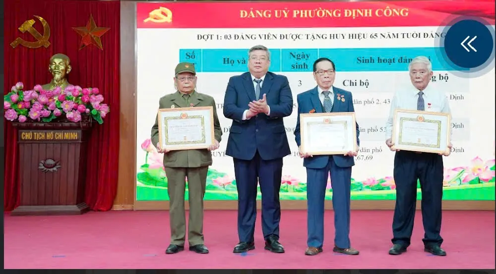 “Việc trao Huy hiệu Đảng không chỉ là sự tôn vinh đối với các đồng chí đảng viên lão thành, mà còn là nguồn động viên, khích lệ thế hệ trẻ tiếp tục phát huy truyền thống, giữ vững phẩm chất người đảng viên, góp phần xây dựng phường Định Công ngày càng phát triển”, Bí thư Đảng ủy, Chủ tịch HĐND phường Định Công Nguyễn Quang Trung khẳng định.