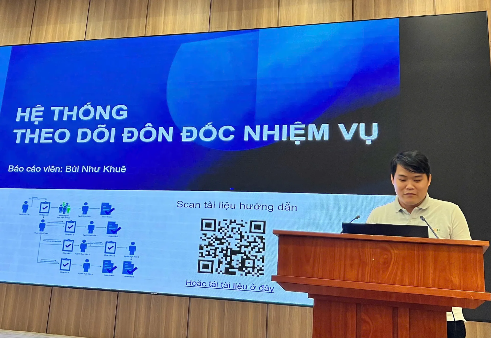 Phó Chánh Văn phòng Thường trực Đảng ủy UBND TP Phạm Ngọc Thu dẫn lại tinh thần chỉ đạo của Tổng Bí thư Tô Lâm tại Hội nghị Ban Chỉ đạo Trung ương về khoa học, công nghệ, đổi mới sáng tạo và chuyển đổi số, trong đó nhấn mạnh chuyển đổi số “không phải là phong trào, mà là nhiệm vụ chính trị trọng tâm, xuyên suốt, có tính cấp bách, lâu dài”. Đồng thời, Quyết định số 333-QĐ/TW khẳng định chuyển đổi số trong các cơ quan Đảng phải gắn liền với đổi mới phương thức lãnh đạo, phong cách, lề lối làm việc và xây dựng văn hóa số.
