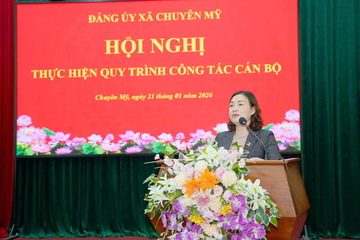 Phát biểu tại hội nghị, Phó Ban Tổ chức Thành uỷ Hà Nội Nguyễn Hồng Nhật cho biết, căn cứ vào công tác cán bộ xã Chuyên Mỹ, Thường trực Thành uỷ, Ban Thường vụ Thành uỷ Hà Nội đã thống nhất chủ trương đồng ý để Ban Thường vụ, Ban chấp hành Đảng bộ xã Chuyên Mỹ thực hiện quy trình giới thiệu đối với 2 chức danh.