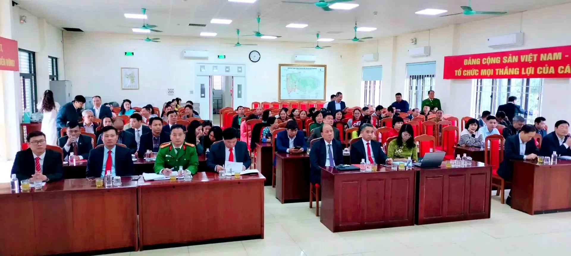 Dự hội nghị có các đồng chí: Vũ Anh Tú – Bí thư Đảng ủy, Chủ tịch HĐND xã; Nguyễn Duy Lưu – Phó Bí thư Thường trực Đảng ủy; Nguyễn Thị Thu Huyền – Phó Bí thư Đảng ủy, Chủ tịch UBND xã; cùng các đồng chí trong Ban Thường vụ Đảng ủy, Thường trực HĐND – UBND – Ủy ban MTTQ Việt Nam xã, Ủy viên Ban Chấp hành Đảng bộ xã khóa I và đại diện các cơ quan, đơn vị, chi bộ trực thuộc.